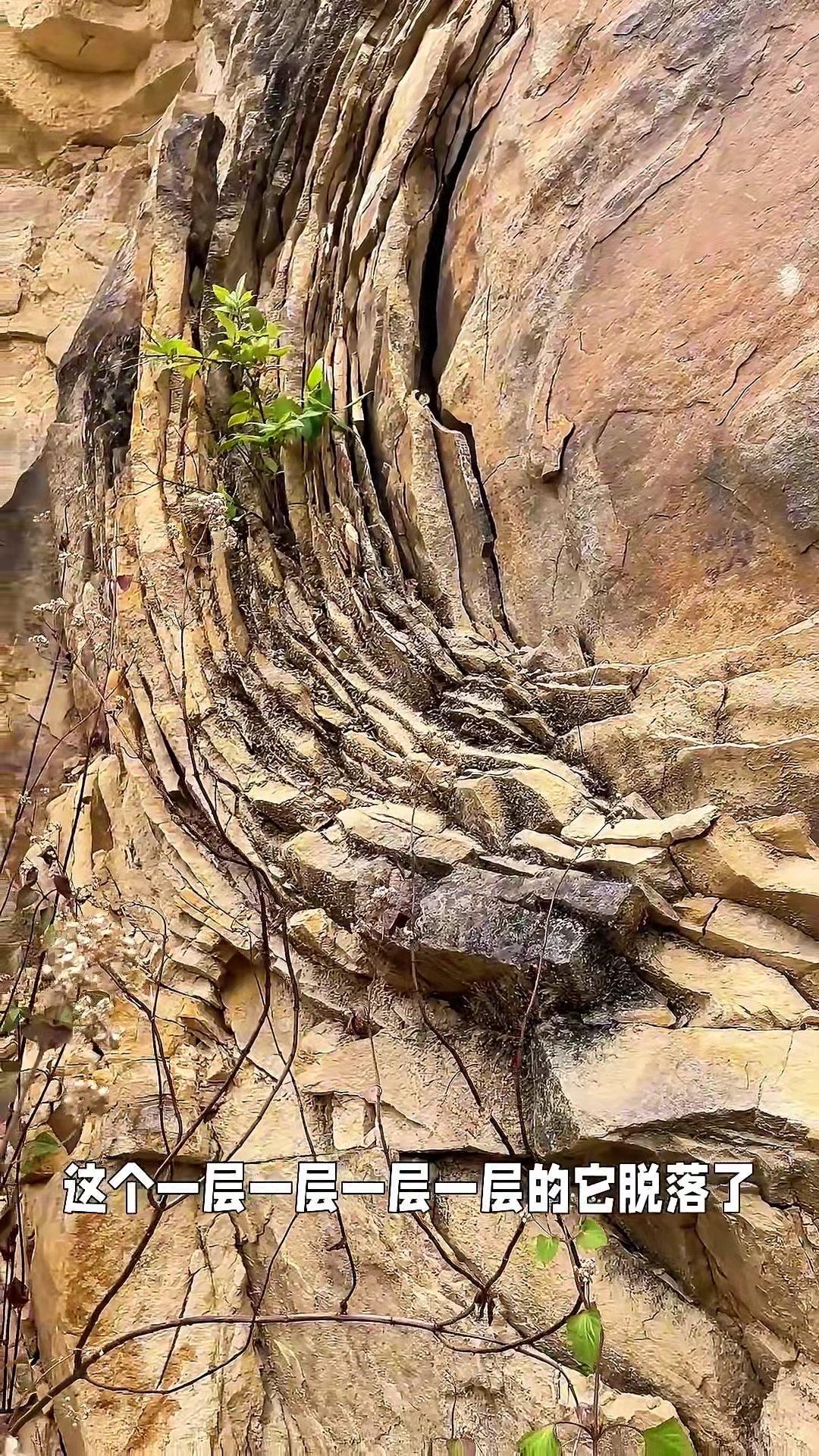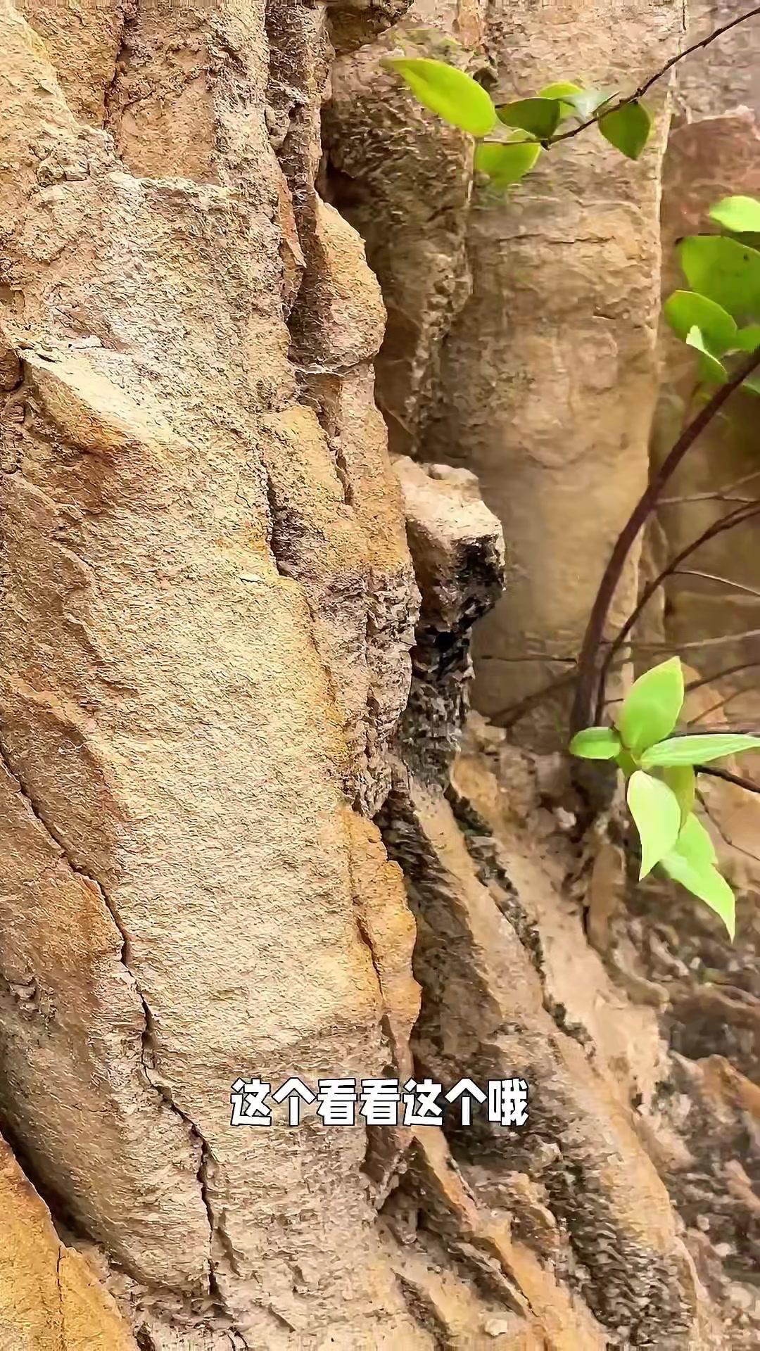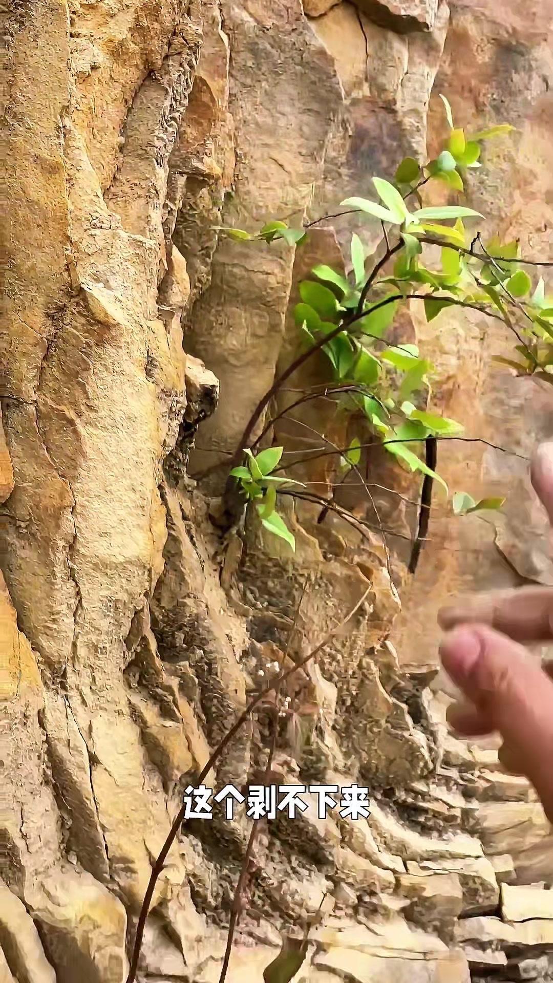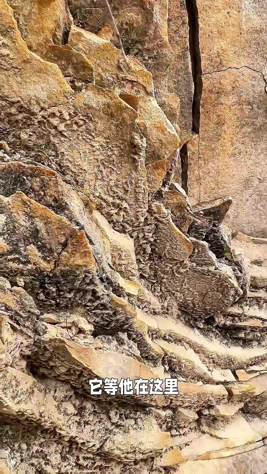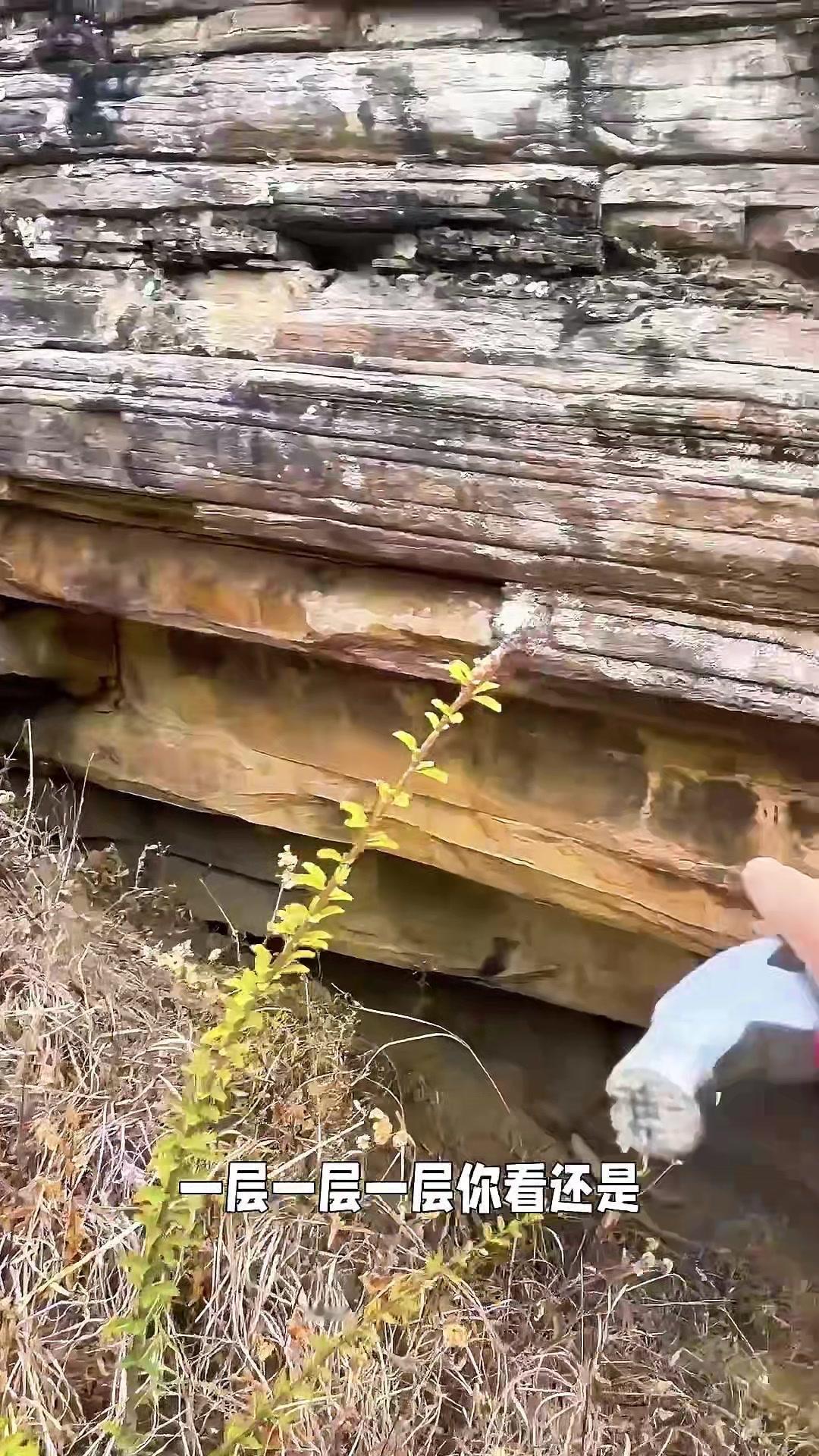3️⃣悬崖探秘:看到一个悬崖,都是橙色页岩层,虽有洞但中间硬内核,取不出半圆壳。