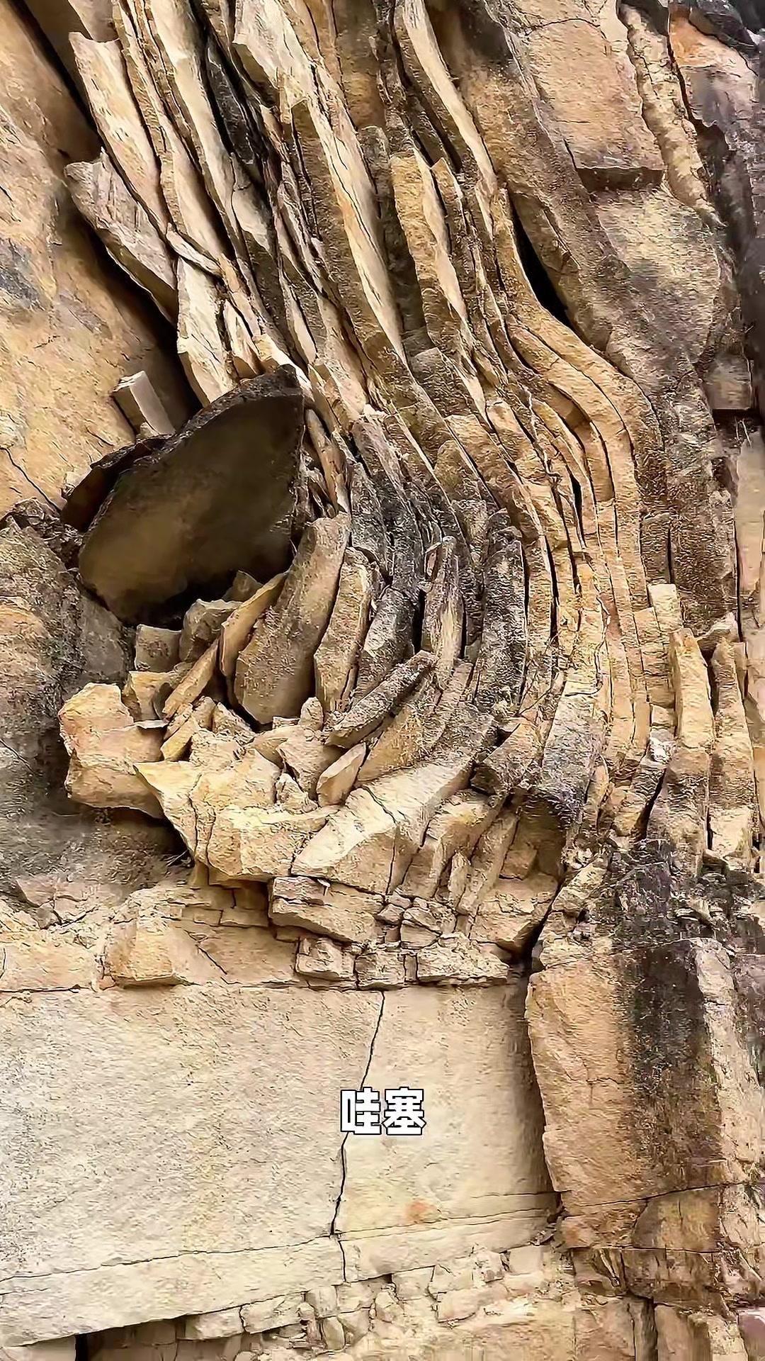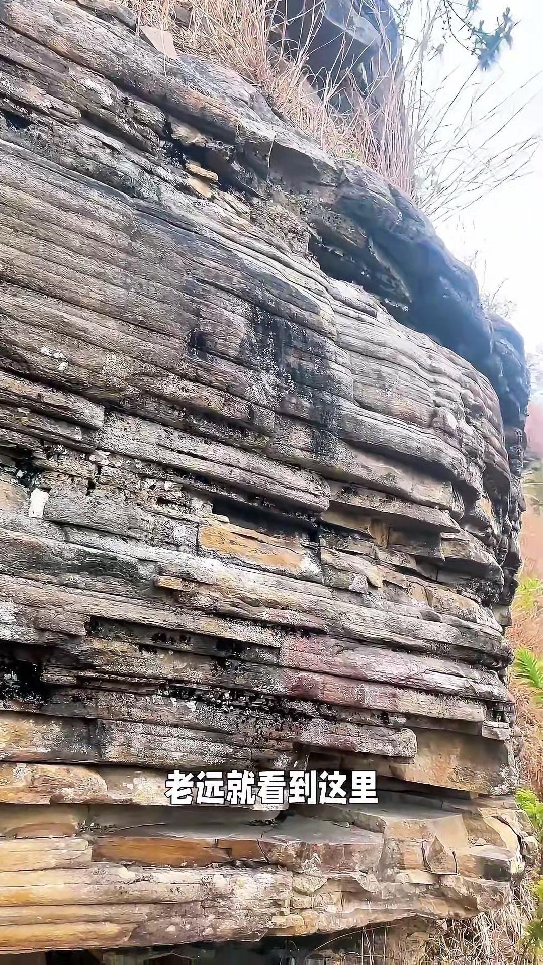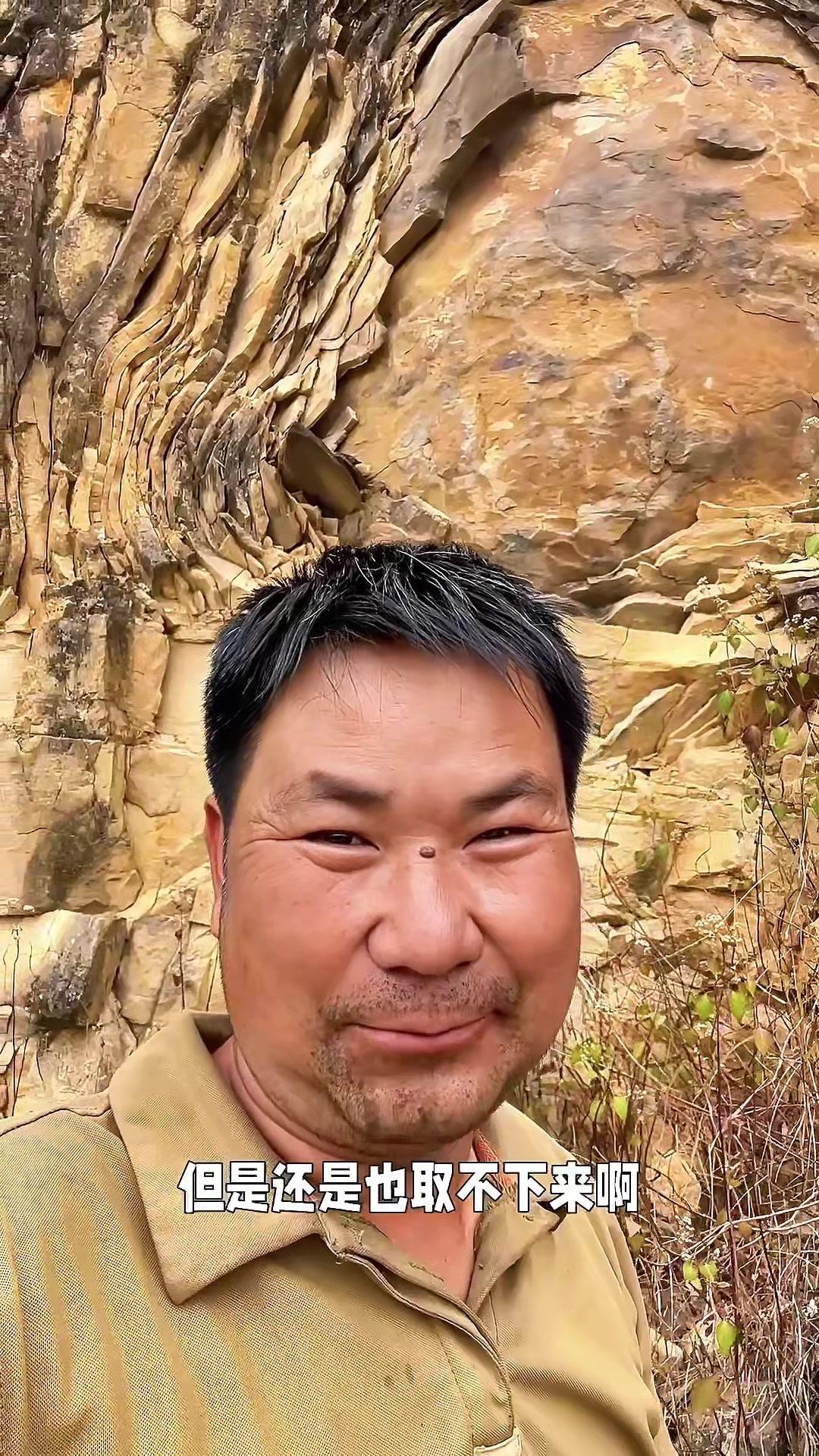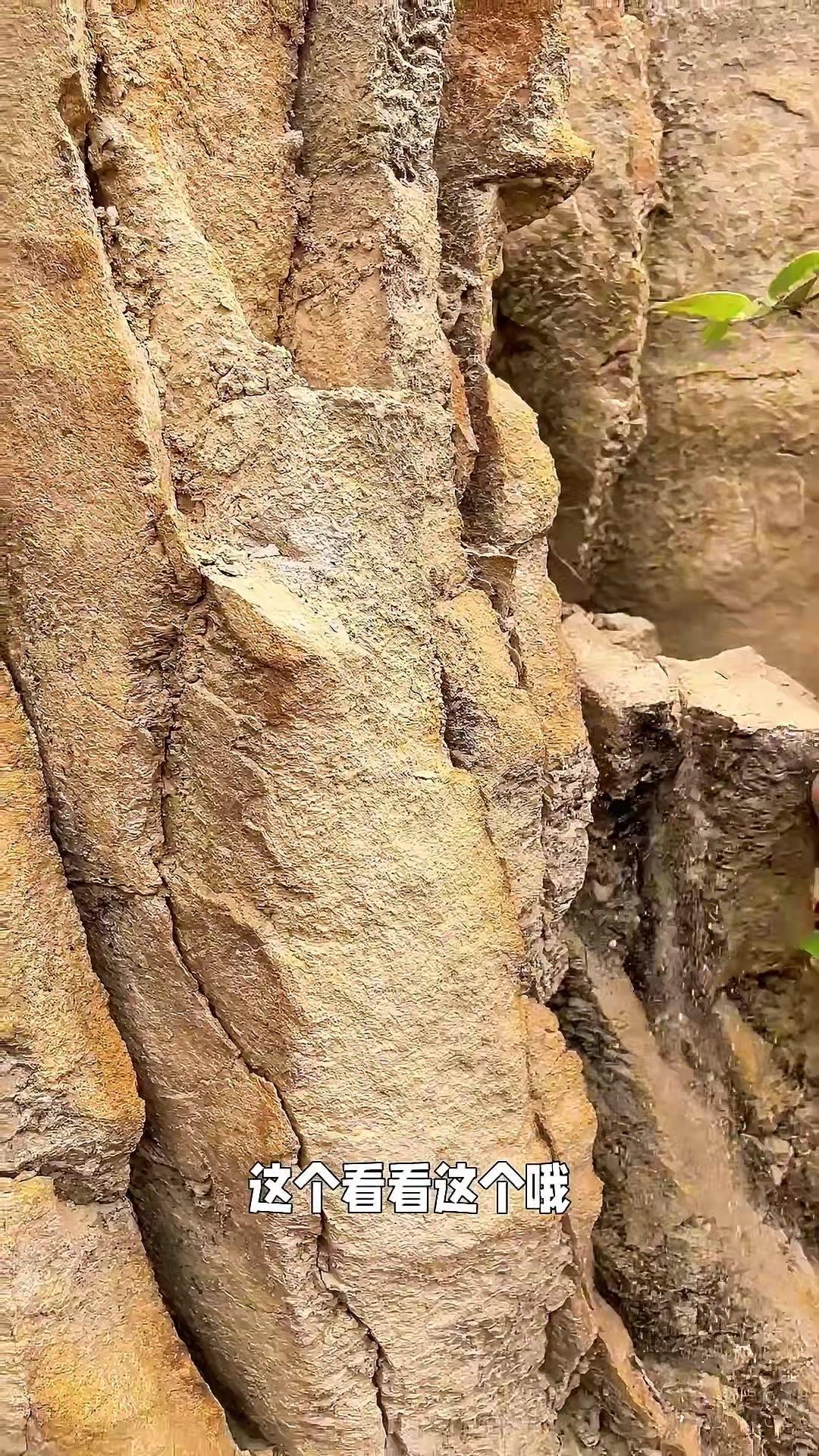 3️⃣悬崖探秘:看到一个悬崖,都是橙色页岩层,虽有洞但中间硬内核,取不出半圆壳。
