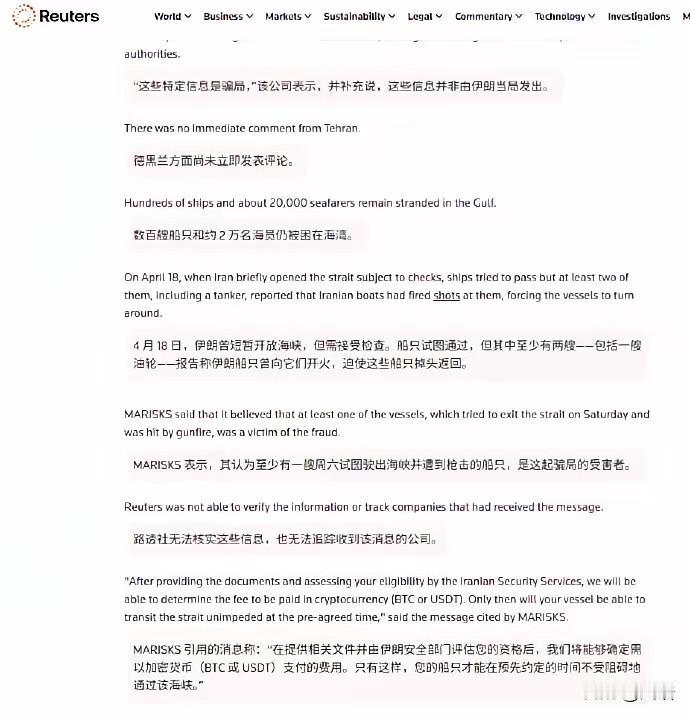 一艘油轮舰长收到革命卫队短信,