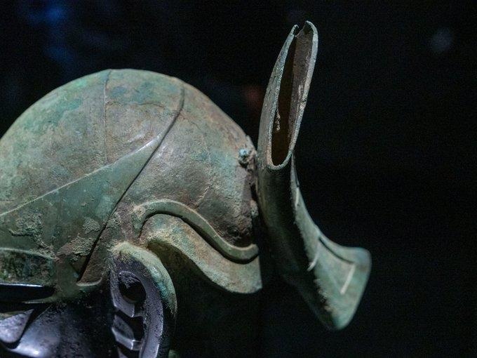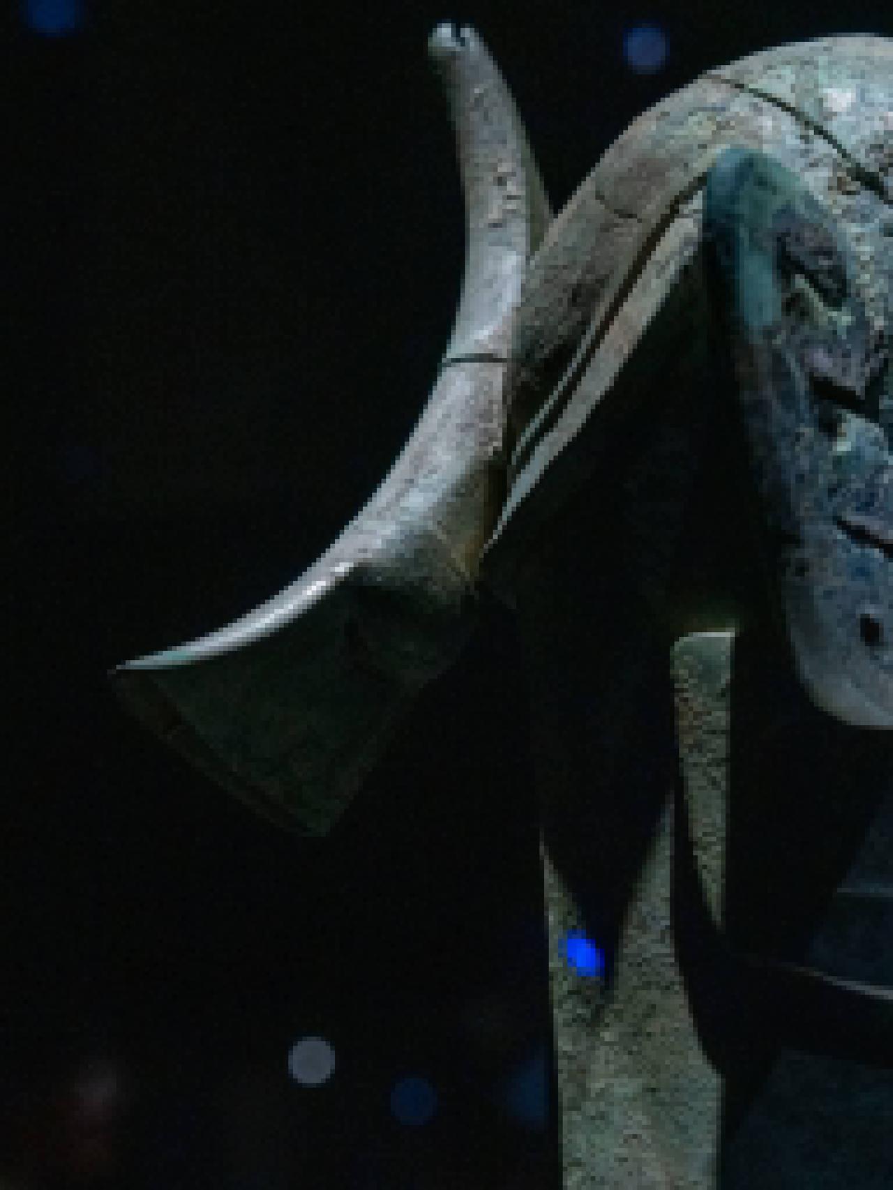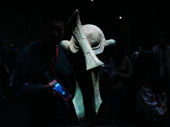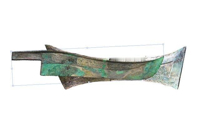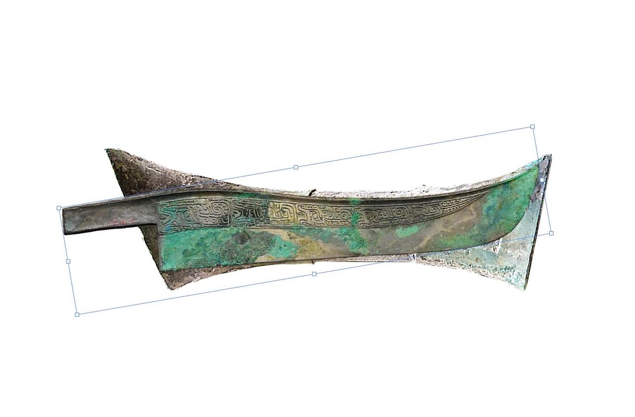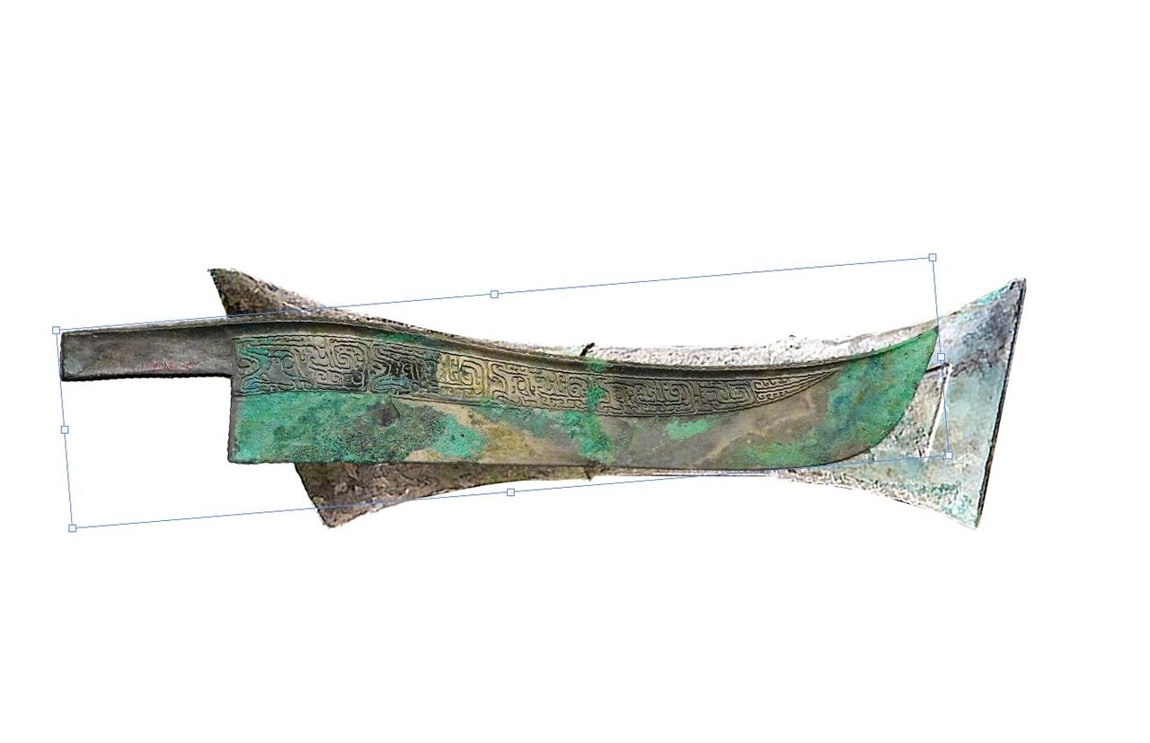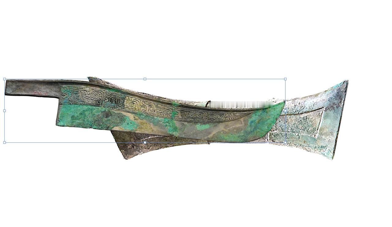 江西新干大洋洲墓葬出土的青铜刀,正好可以顺利地牢牢插入三星堆青铜神像脑后的刀鞘。