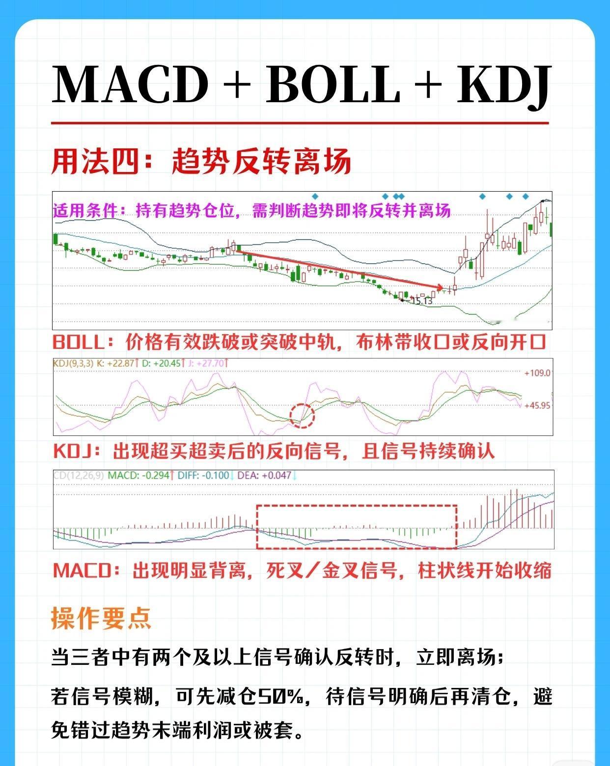 - KDJ(随机指标):出现超买/超卖后的反向信号(如超买后死叉、超卖后金叉),且信号持续确认(避免假突破干扰)。