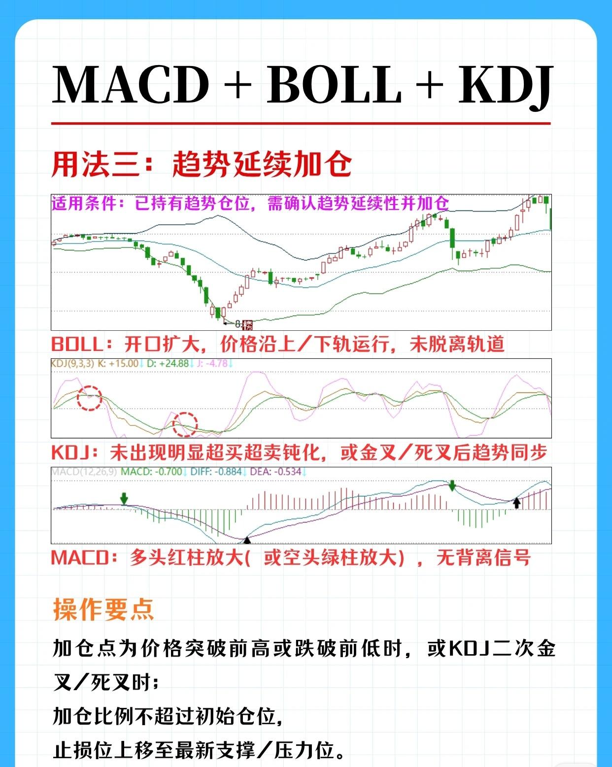- 加仓点:价格突破前高/跌破前低时,或KDJ出现二次金叉/死叉时(确认趋势延续的强化信号)。