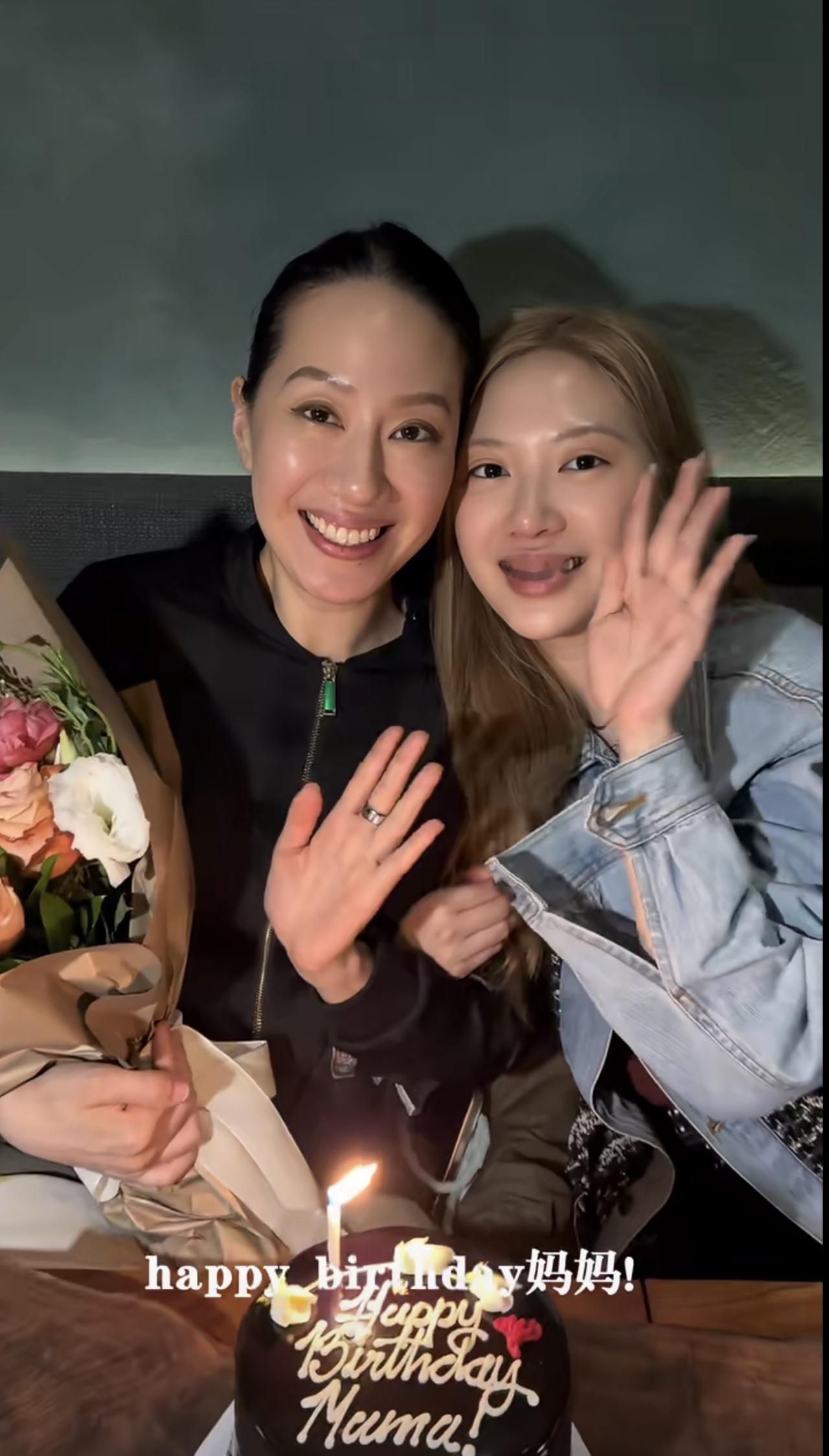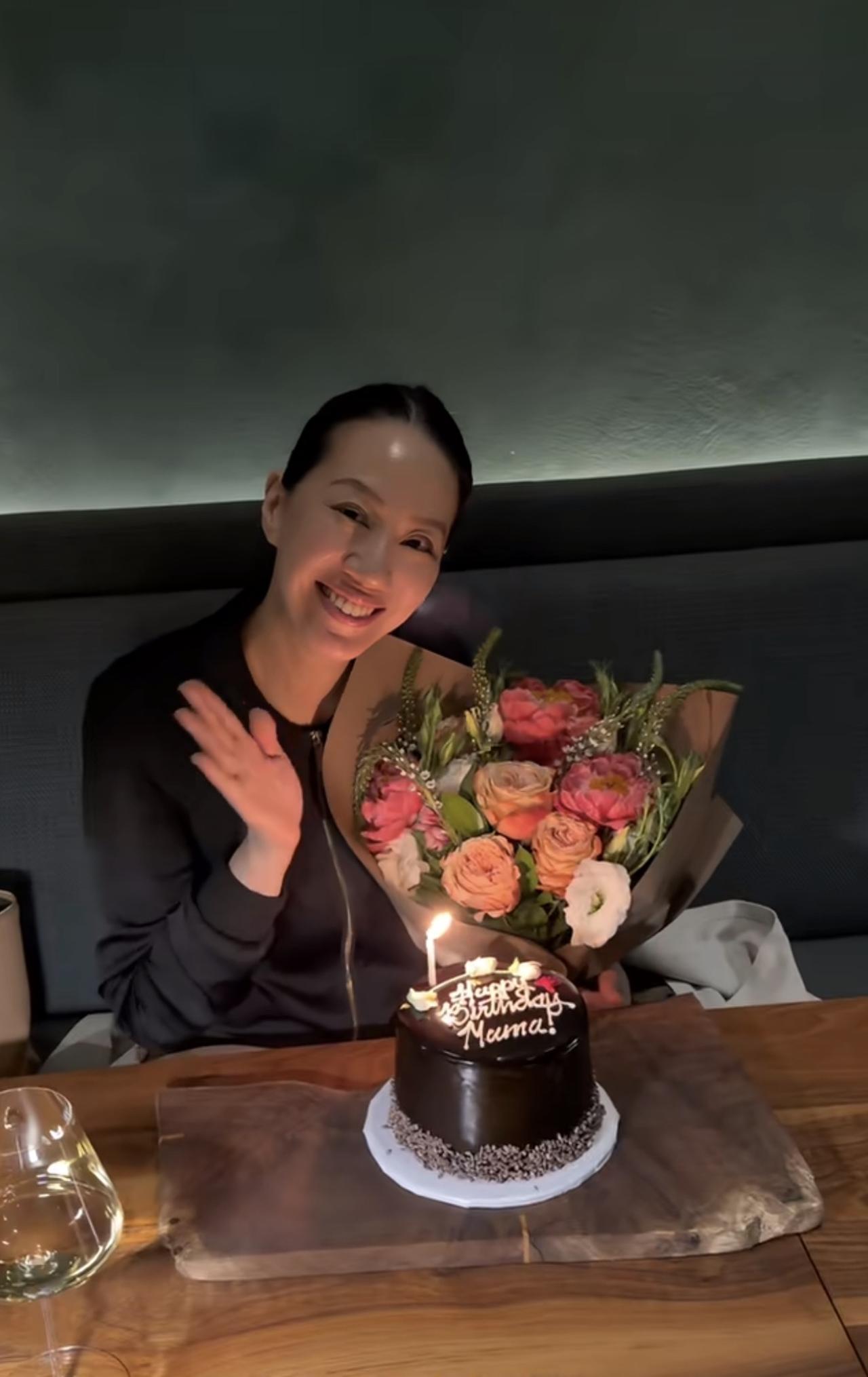 45岁的汪诗诗在美国陪着女儿,甄济如为妈妈准备了鲜花、生日蛋糕,还有精致的美食。
