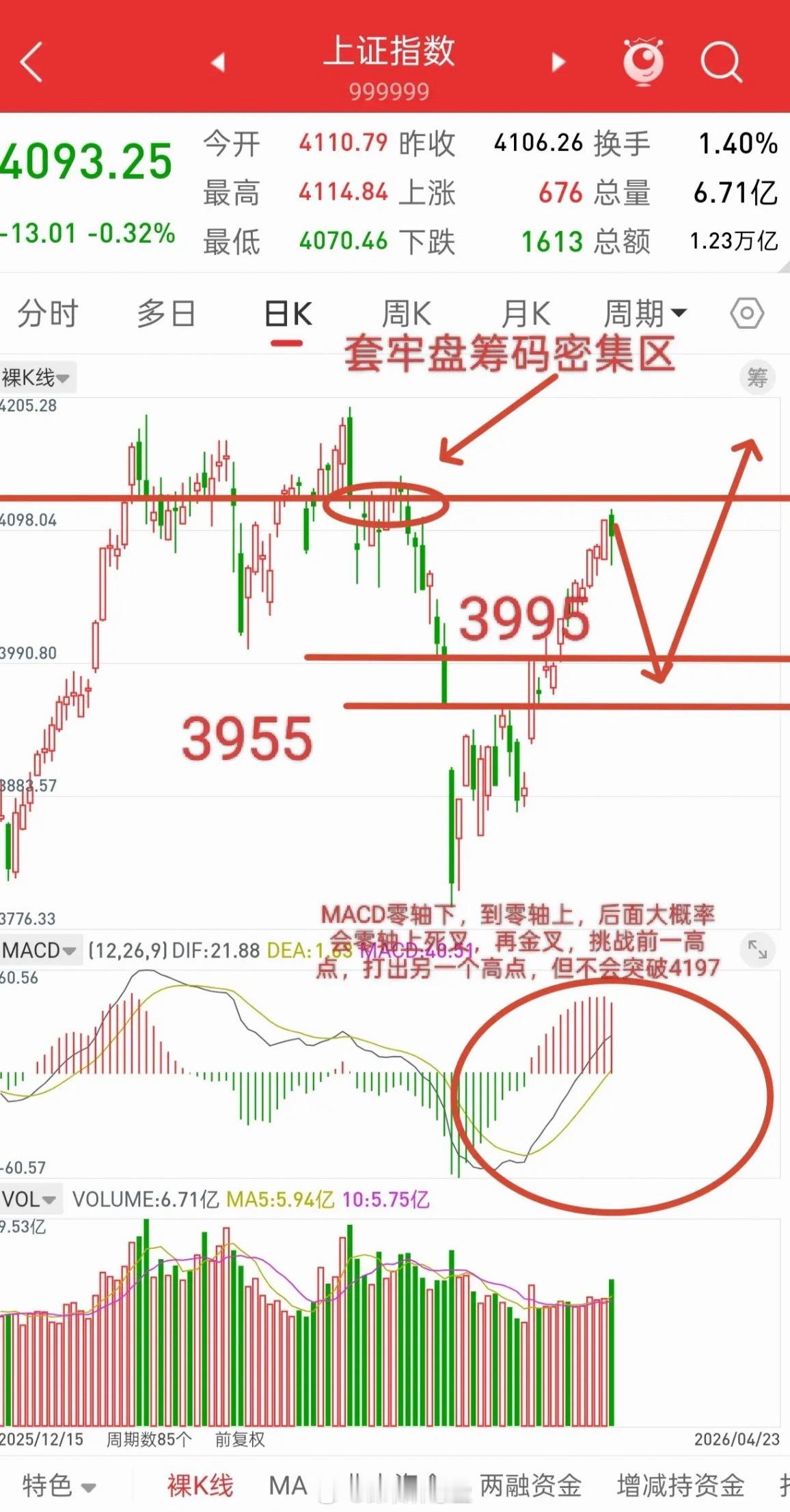但是今年1-3月,这波复合顶4190-4197,期间还有4170,这里的套牢盘筹码不是一丁半点,想直接突破,难上加难。