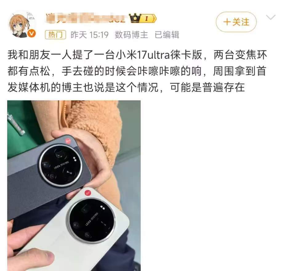 退货数据进一步印证了问题的严重性。行业数据显示,小米17 Ultra的线上退货率虽不足3%,但线下门店的退换货率高达17%,不少门店顾问因处理相关退换单忙到手指发颤。这种差异源于“样机效应”——线下用户能直接触摸体验,一旦感受到变焦环的松动,往往当场就放弃购买,甚至已购机用户会专程到店要求退货。有线下经销商透露,变焦环问题已成为门店的主要失单原因,原本寄予厚望的徕卡联名与变焦环设计,反而成了销售阻碍。