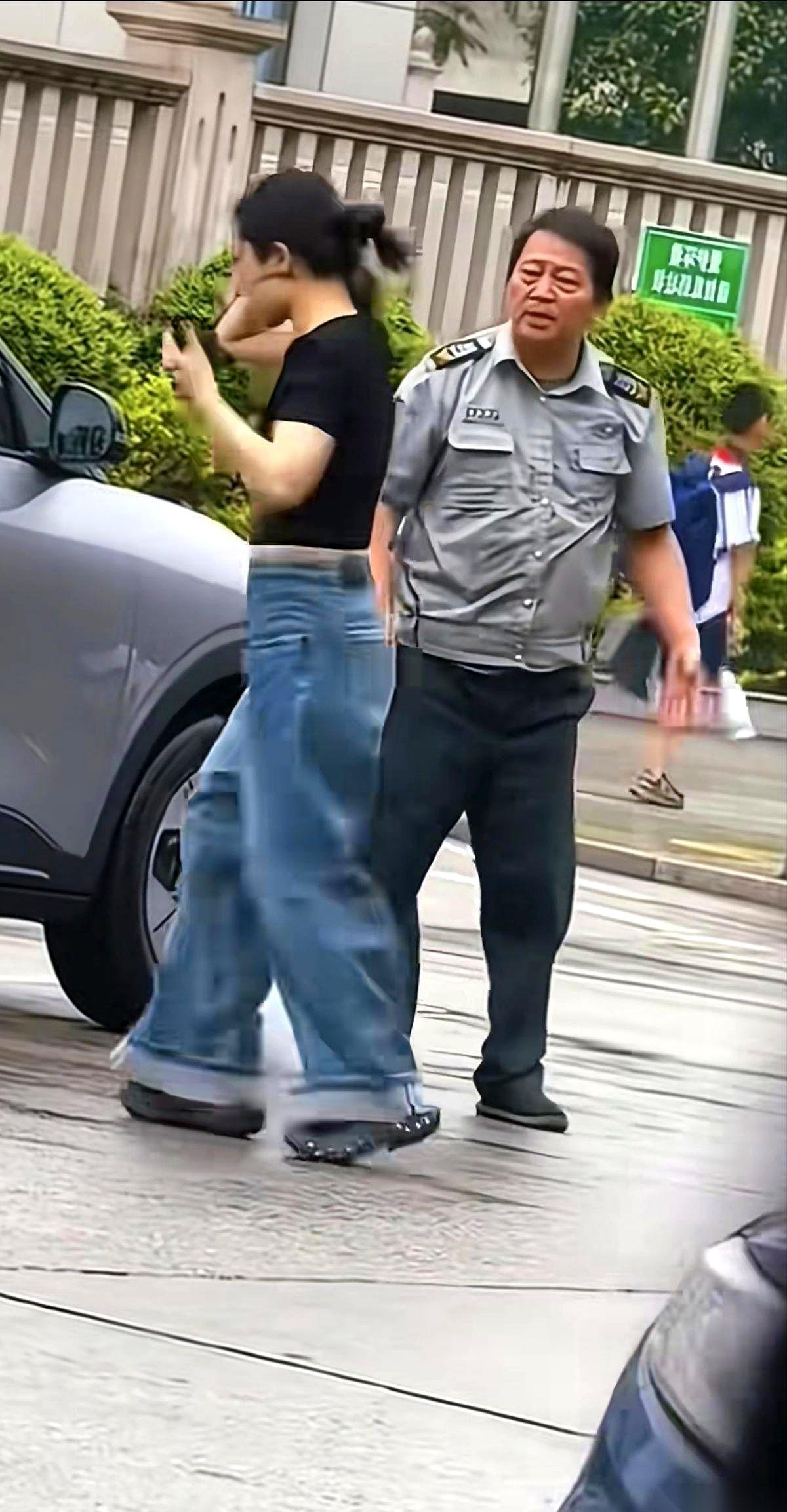 就在几秒前,她还抬着下巴,手指头快要戳到保安大叔的鼻子上。保安就那么站着,两只手垂在身侧,像个木桩。