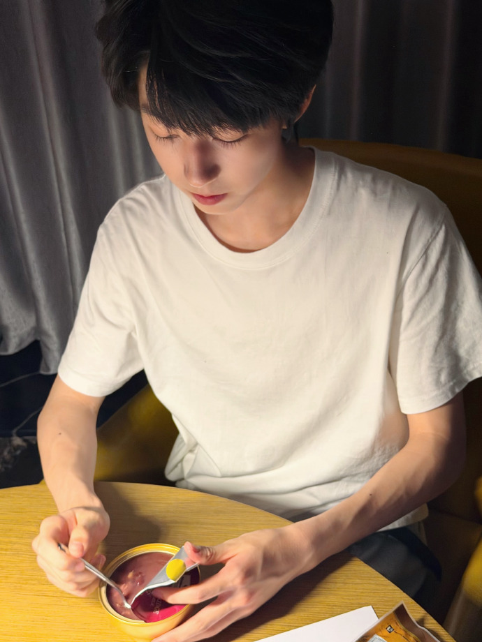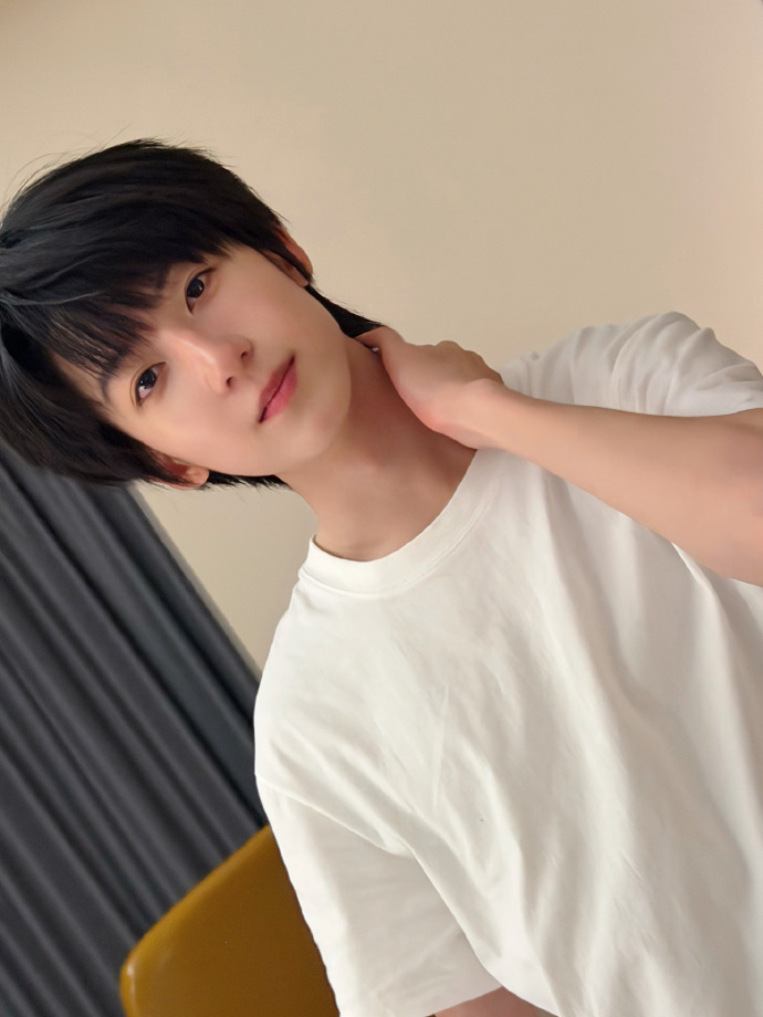 杨博文看星星的记忆 留存的记忆是和杨博文看星星的💫夜晚!白T+顺毛简单造型帅麻了,一组睡前自拍干净又耀眼的少年感好心动💕杨博文的睡前自拍