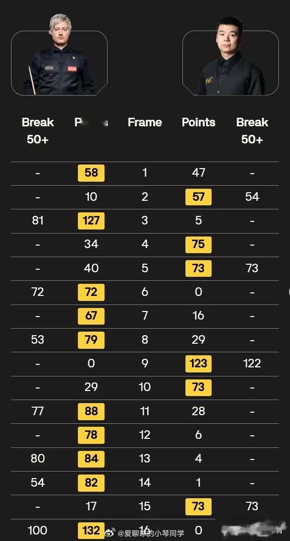 全场比赛,庞俊旭打出了一杆破百和三杆50+,罗伯逊则是打出了一杆破百和六杆50+。从首轮来看,只有斯佳辉1人是出局的种子选手,15位种子球员晋级16强、也是追平了历史纪录,中国共有4人晋级、7人遭遇了一轮游,总体上的战绩中规中矩,算不上很好。斯诺克 斯诺克世锦赛 斯佳辉 16强以及1/8决赛对阵如下——
