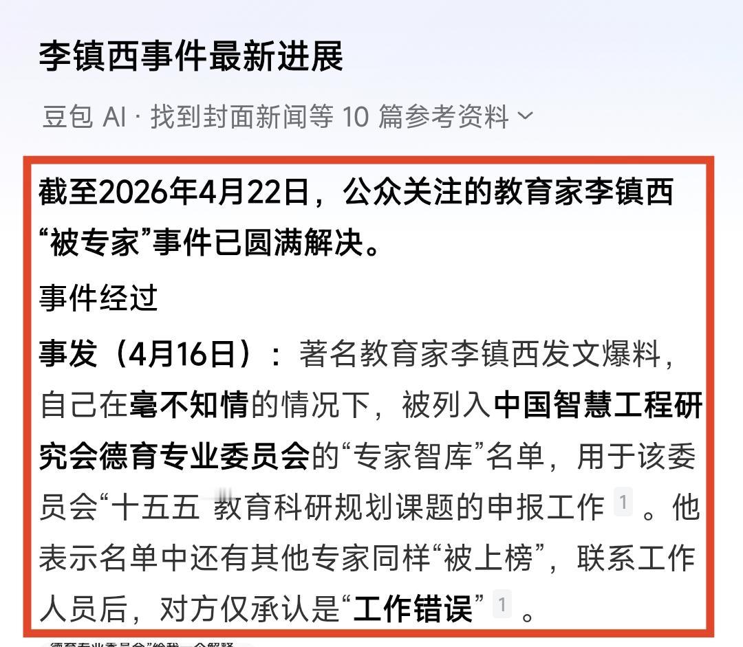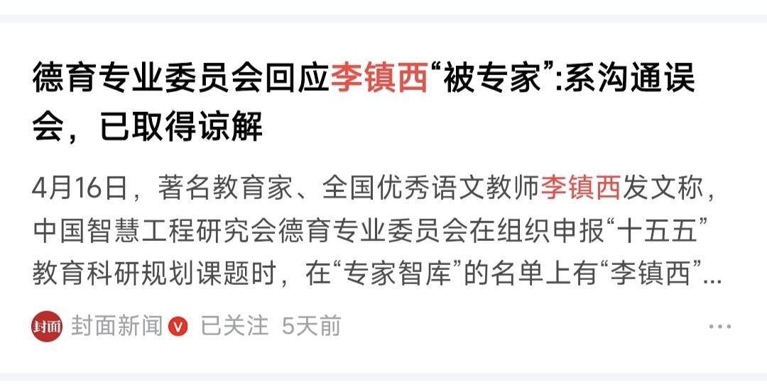 著名教育家李镇西“被专家”事件,其实是学术和教育的一个闹剧。近日,备受公众关注的教育家李镇西被某学术机构聘请为专家进行宣传,看李镇西本人并不知情,一不小心“被专家”,其实想想真的挺可笑的。