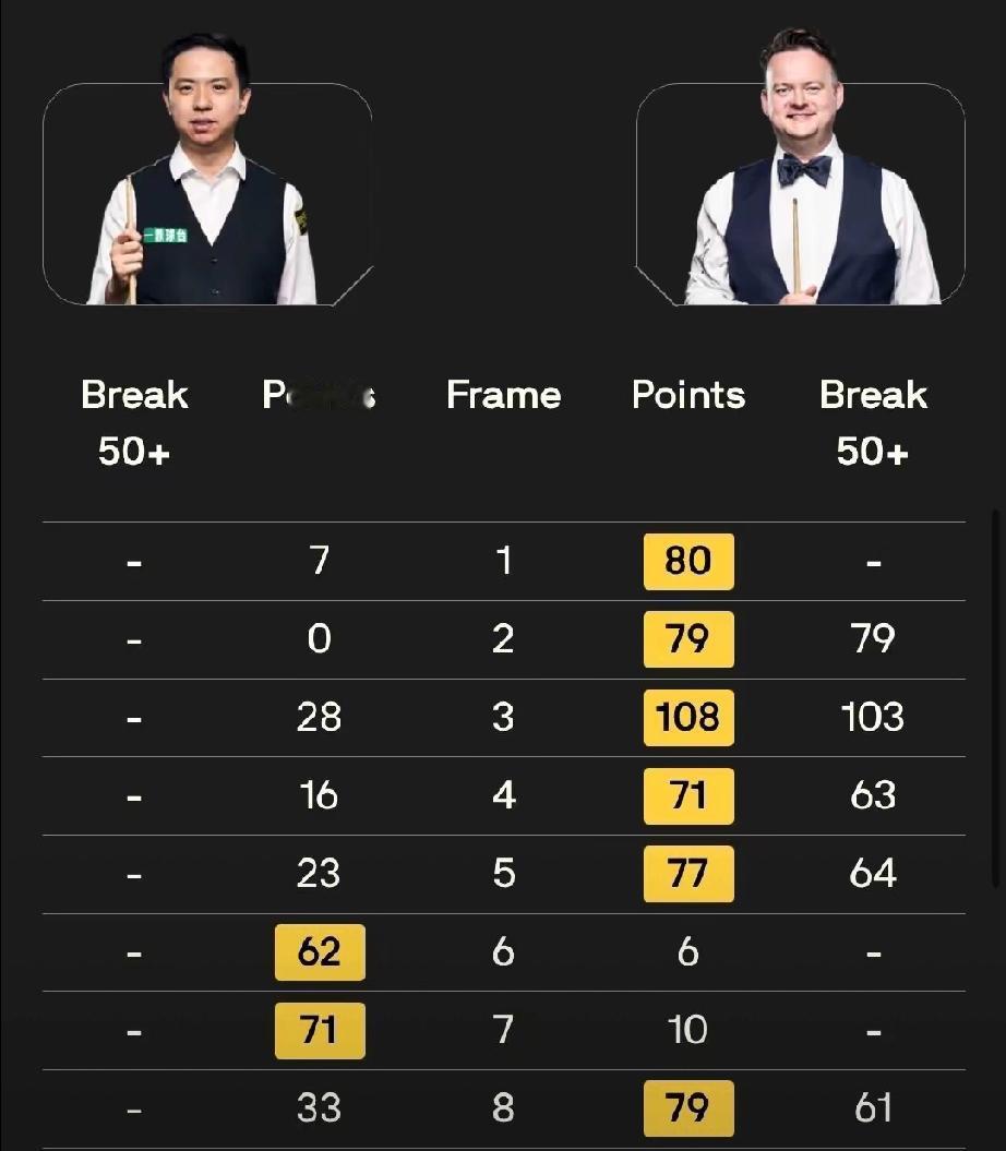 4月23日晚,世锦赛第二轮首阶段,上轮逃出生天的墨菲,果然像变了一个人似的,火力全开状态拉满,轰出一波长长5连鞭,以6-2领先于肖国栋。
