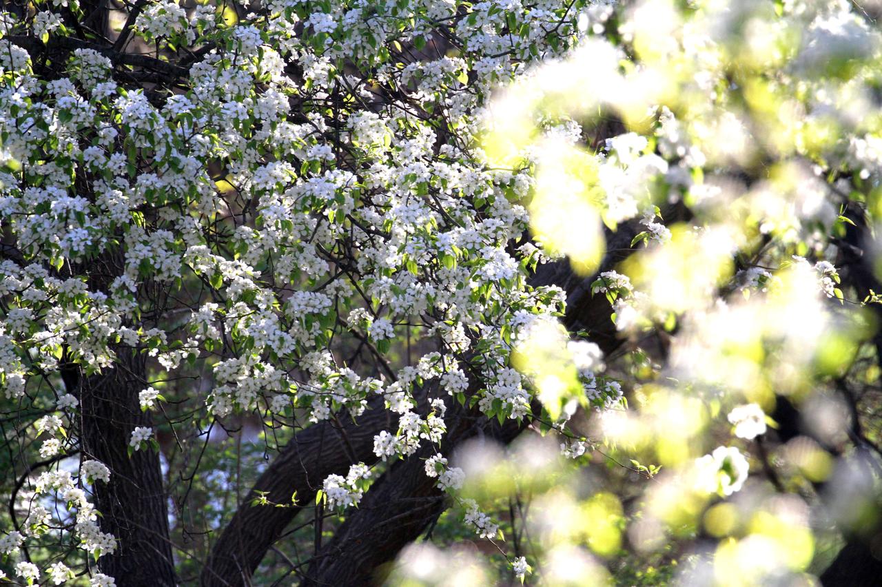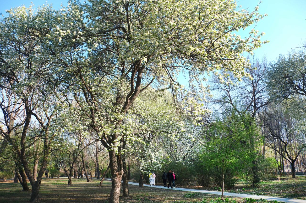 2026年4月23日,辽宁沈阳,在北陵公园里,几棵百年老梨树梨花盛开,洁白如雪的