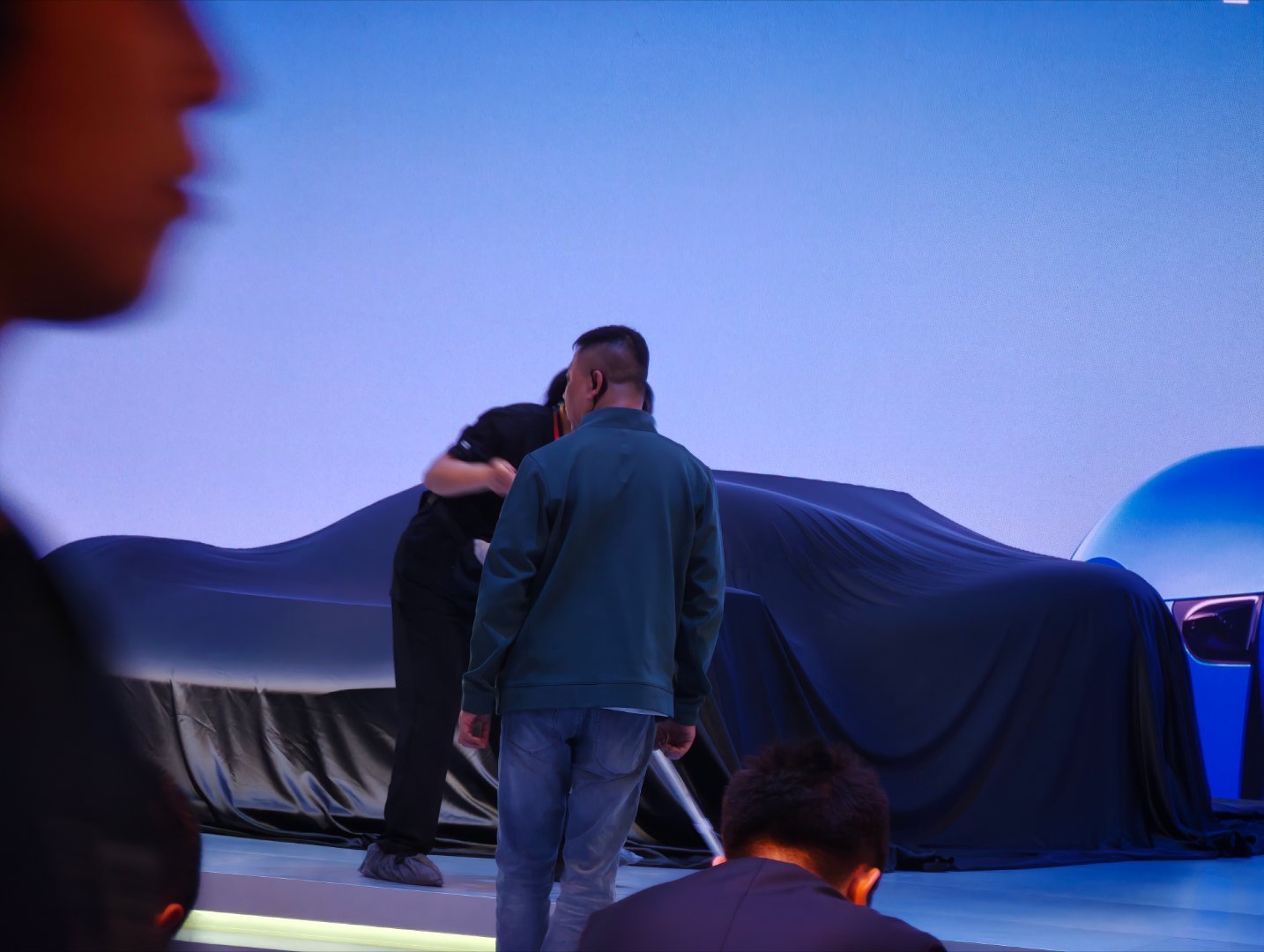 来到小米展台了,大家猜猜这个盖着幕布的是什么大宝贝