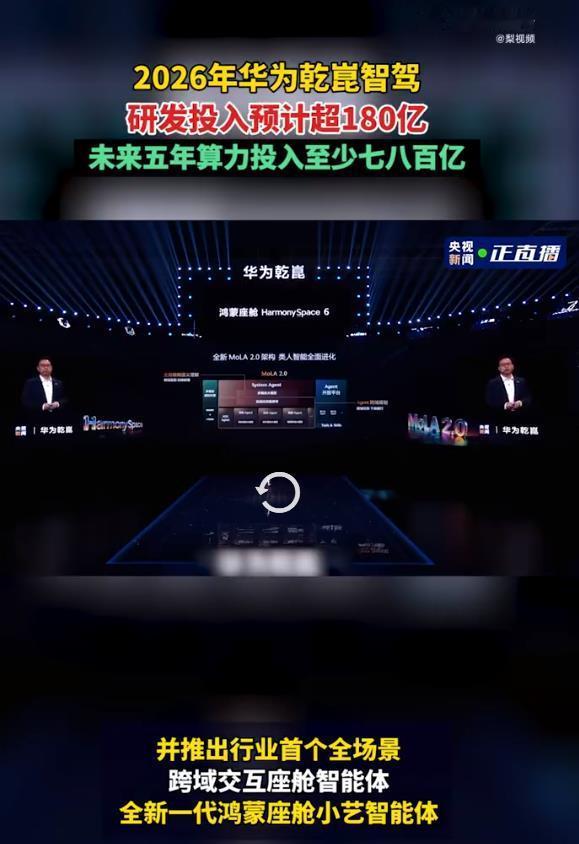 2026年华为乾崑智驾研发投入预计超180亿180亿砸向智驾,这是要硬啃技术高地。全场景座舱智能体加持,野心不止于车机,更是生态。算力投入用百亿计,这是铁了心要当“卖铲人”。技术储备够厚,但落地体验才是关键。别让高投入变成高参数,用户感知到的智能,才是真智能。华为乾崑未来五年算力投入至少七八百亿