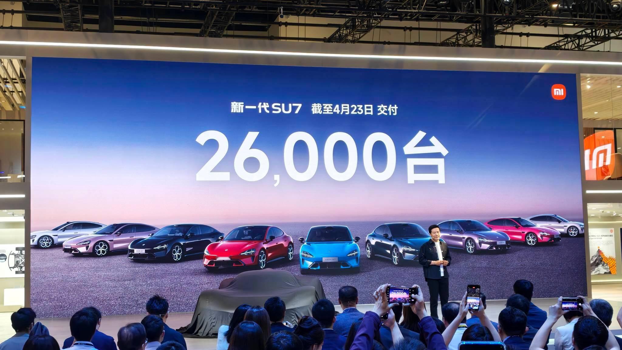 在第十九届北京车展上,小米汽车官方披露累计交付已超65.5万台,其中3月23日开启交付的新一代SU7累计交付2.6万台,目前订单已超6万。2026北京车展 北京·中国国际展览中心顺义新馆