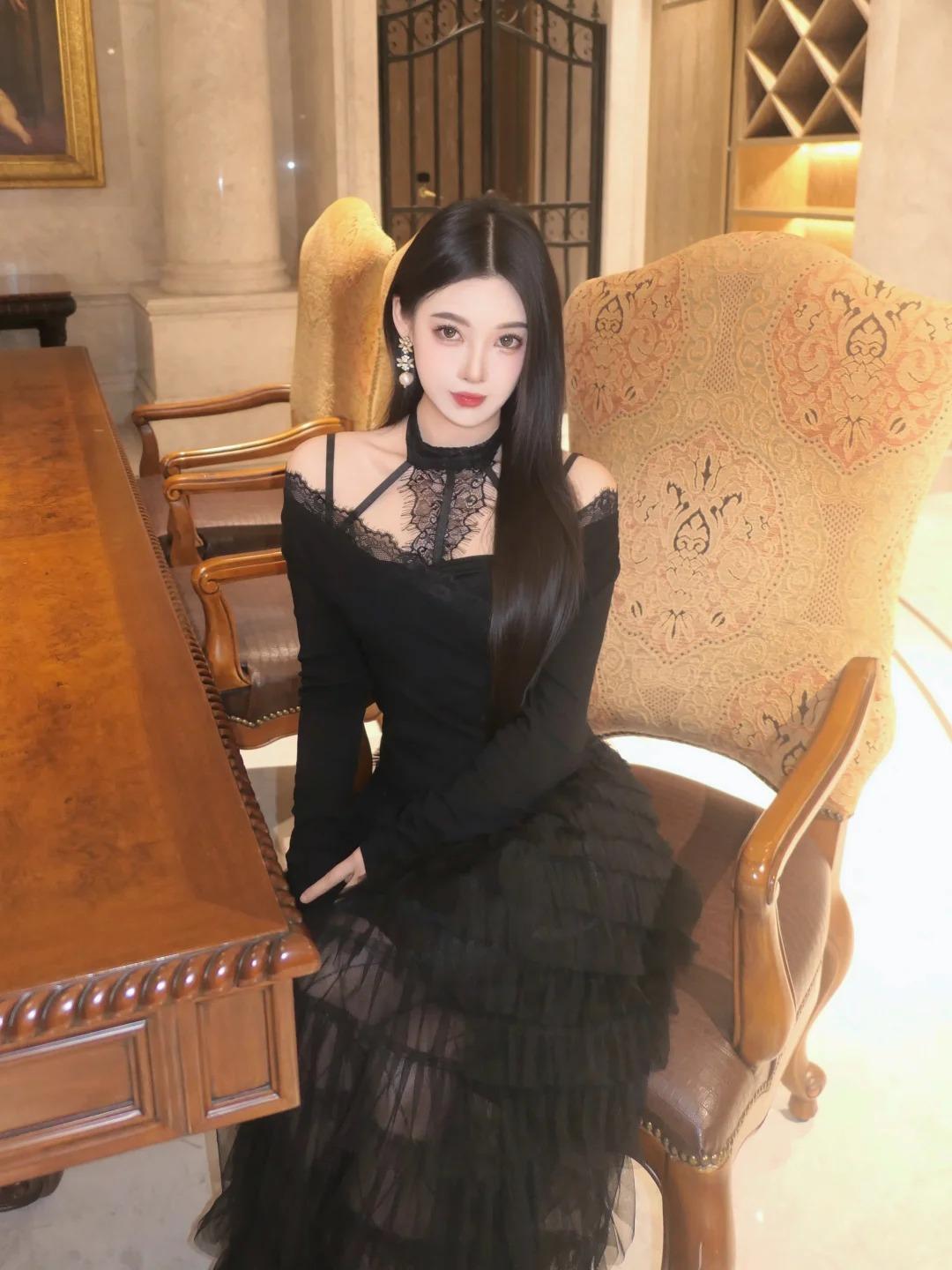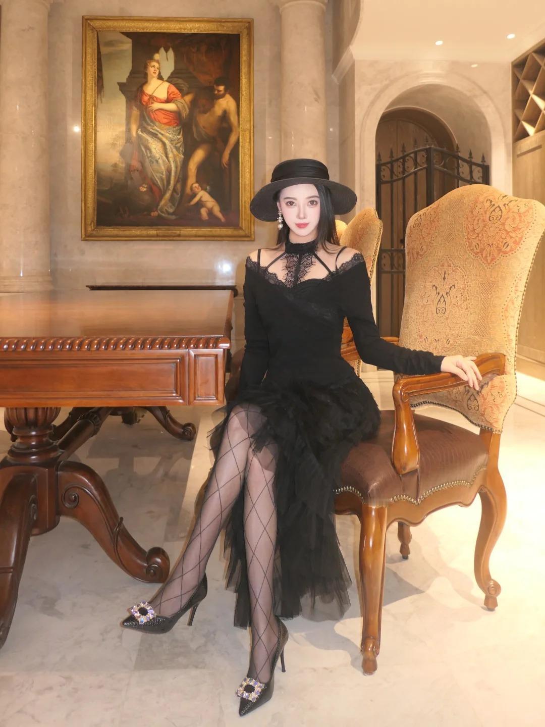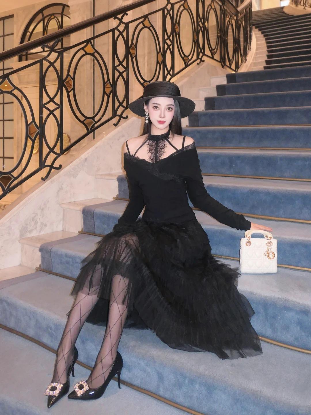黑天鹅🦢 all black 也可以很仙 色系:黑 搭配:黑色蛋糕裙➕菱格黑丝