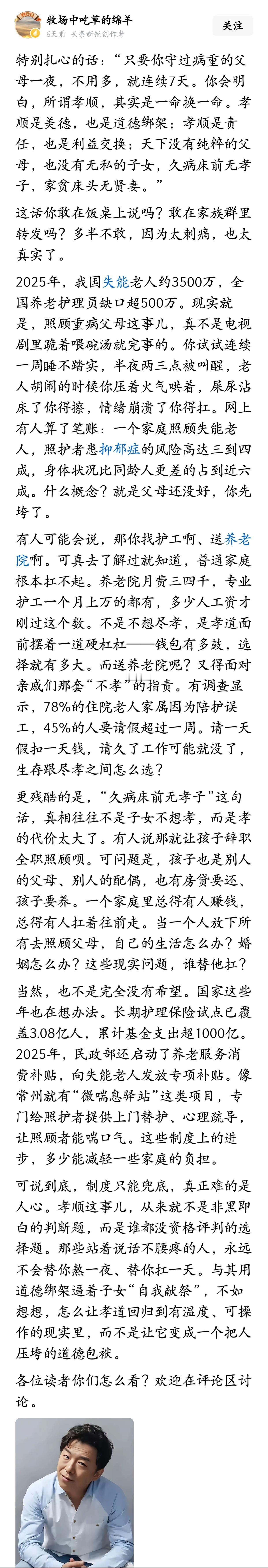 一针见血的一段话:“只有你老了才会懂得,所谓的天伦之乐,只不过是自欺欺人的幻想,
