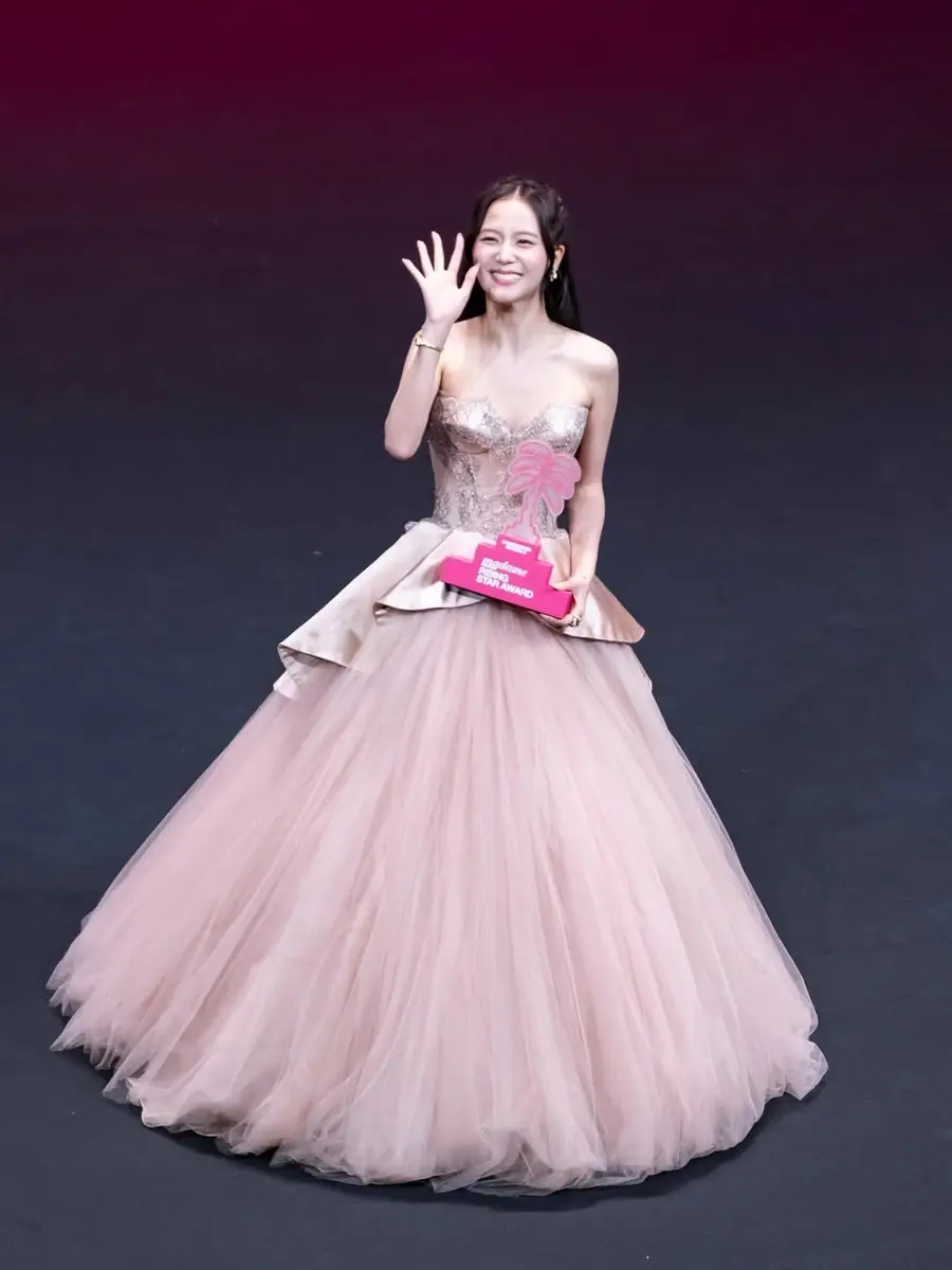 金智秀一袭粉裙甜美优雅 脸颊比心化身在逃公主