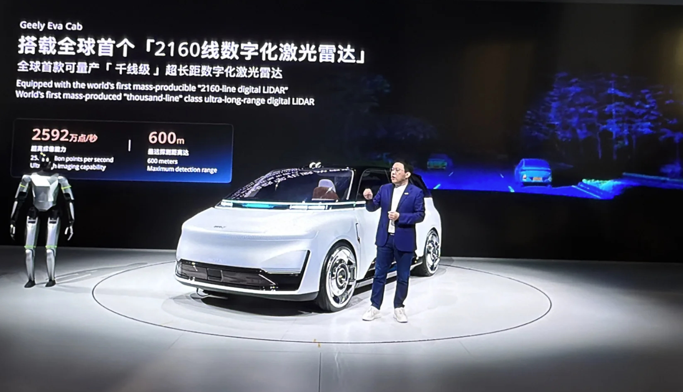 这次2026北京车展 ,吉利把 Eva Cab 摆出来了,原生开发的Robotaxi在传感器布局、车内空间、冗余系统、远程运营上,更像是为未来出行准备的产品。