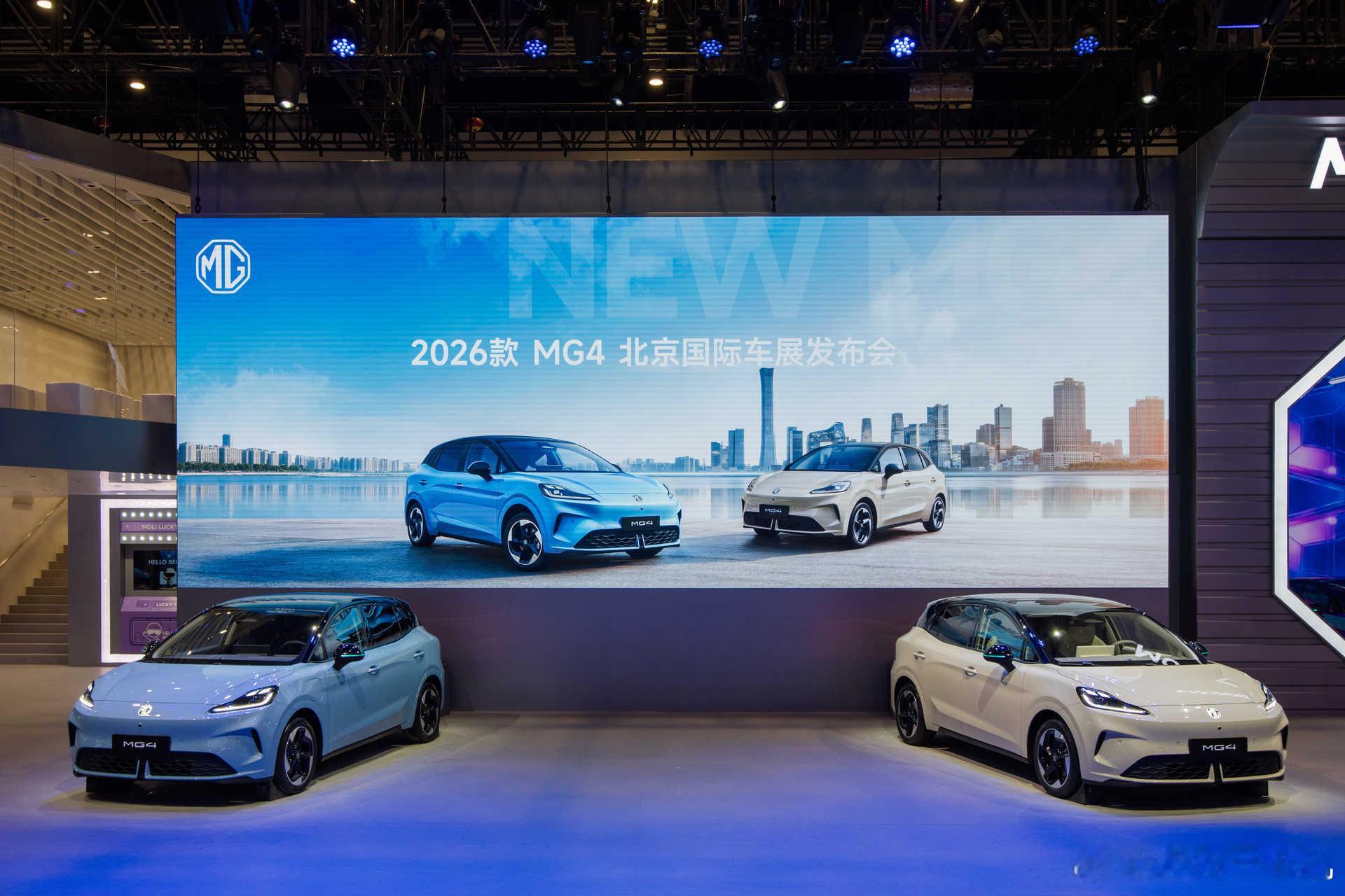 智驾数码团MG42026款MG4MG4改款 今天在北京车展看完2026款MG4,说实话有点坐不住了,限时6.58万起,这个价位,行业给300公里它给400公里,别人卖400公里的价它给500公里,确实没得说,再看配置,全系标配CTB电池车身一体化、120kW电机,还有同级唯一的VMC防爆胎稳定系统,前排座椅加热通风按摩全配齐、15.6英寸2.5K大屏、8155芯片,这些放以前谁敢想是10万内能有的?
