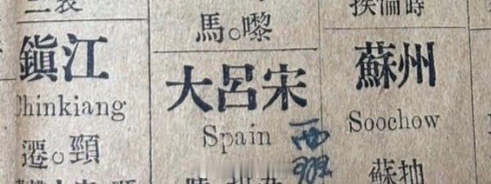 古老的英语入门读物,非常有趣。包括如何记住字母的形状的描述,对应的中文读法,一些地名的翻译……读音一看就是粤语区域的印刷物,那么早就有“鸦劳”来表示“R”。我现在有粤语区长大的人和我说“鸦劳”我都要迟疑很多秒来疯狂思考到底是“L”还是“R”,也是服了粤语区对英文的特别发音规则,跟日语区一样需要有足够储备才能理解。最后一张图,原来西班牙被称为“大吕宋”。