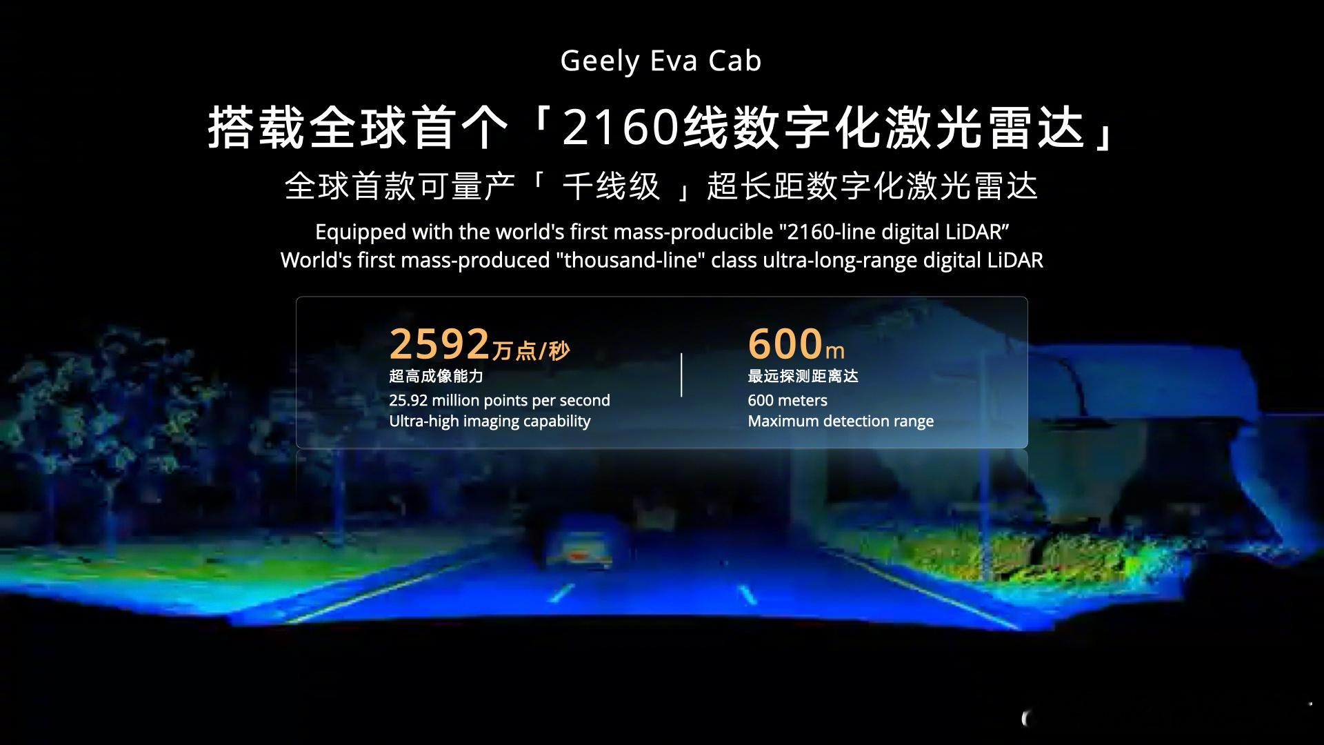 更有全球首个2160线数字化激光雷达每秒2592万点超高成像600米最远探测比人眼看得更远更清鬼探头、复杂路况全预判