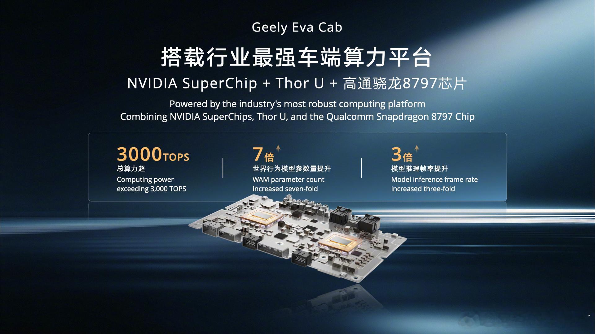吉利旗下全新的曹操专车Robotaxi全球首个量子安全AI电子电气架构EEA 4.0加持搭配Superchip+Thor U+高通骁龙8397芯片总算力超3000TOPS模型参数量暴涨7倍推理帧率提升3倍复杂路况秒级响应不卡顿