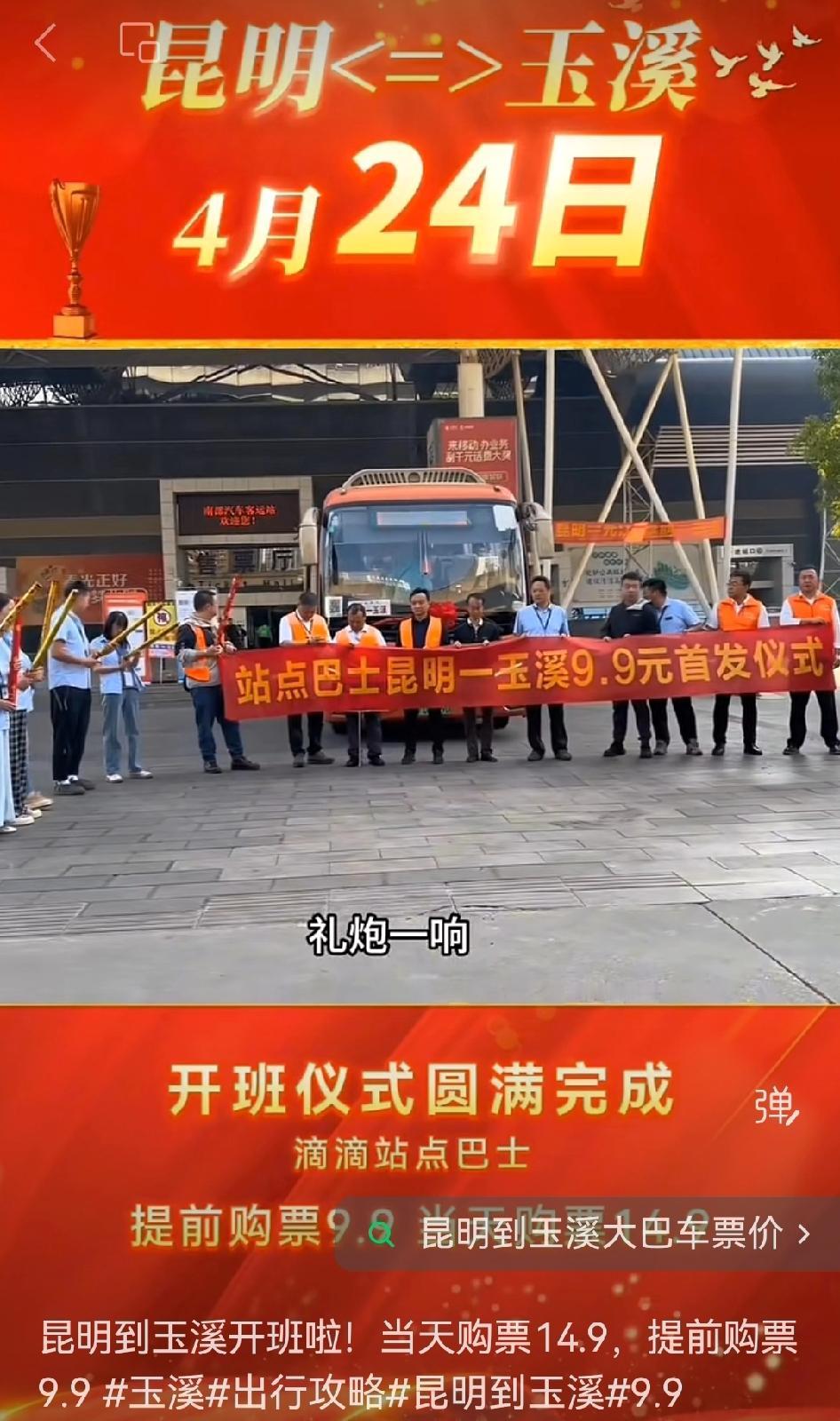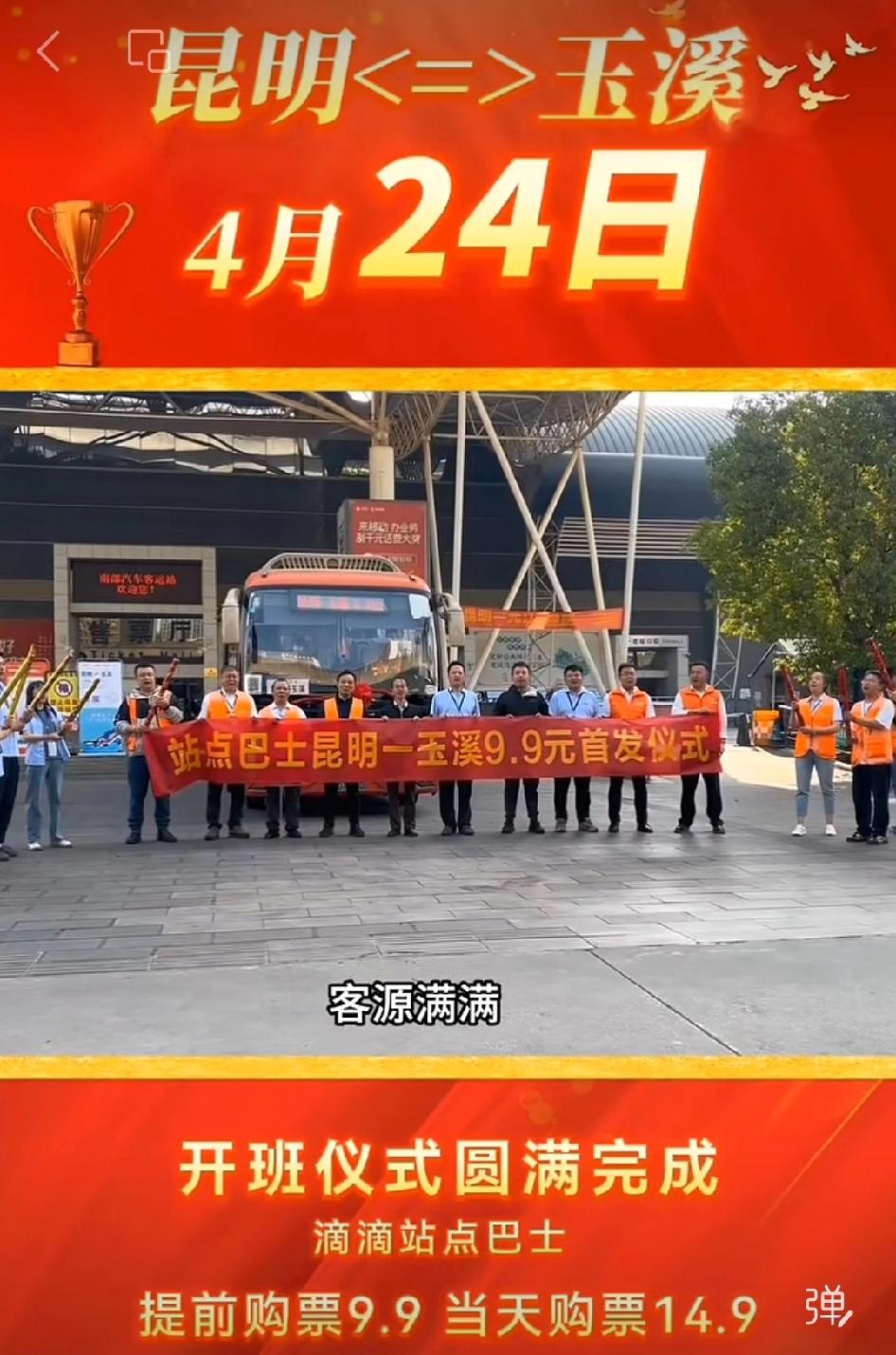 昆明到玉溪出行福利来啦!现在当天购票 14.9,提前购票只要 9.9,在滴滴出行小程序里的站点巴士就能买,主页还有购票教程。
