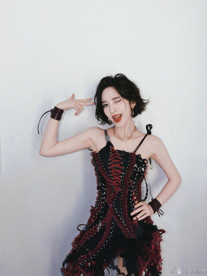 这样的祺贵人朕从未见过 谁能拒绝帅到犯规的祺贵人,唐艺昕这组造型太惊艳,皮衣配杜