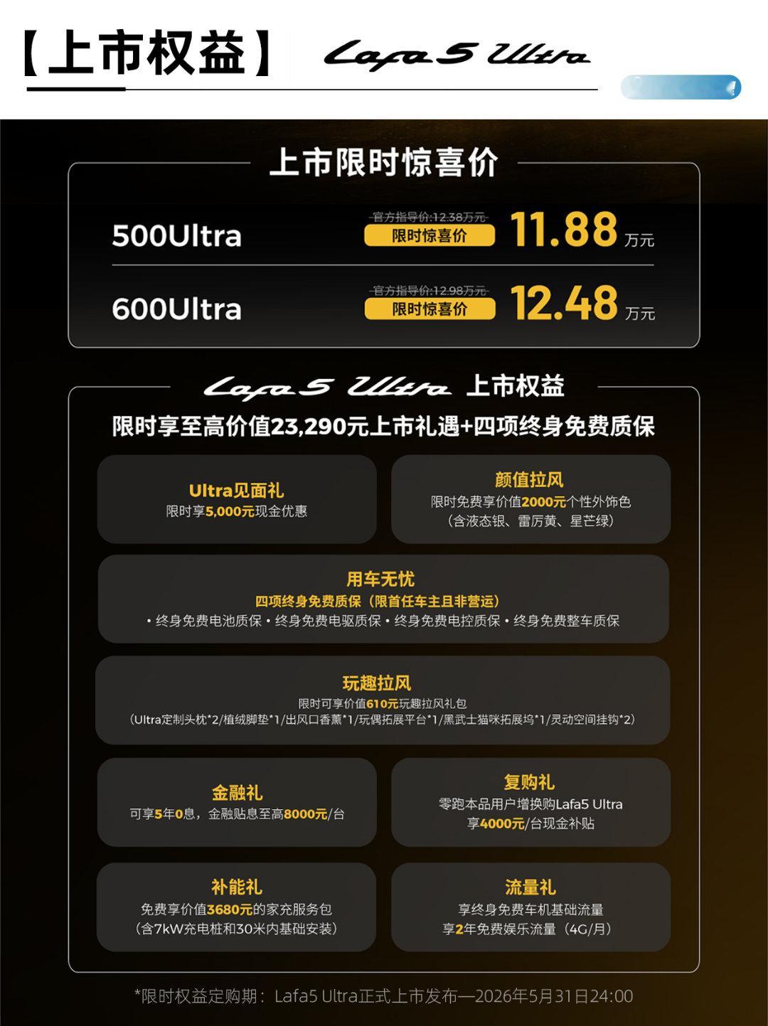 总结下来,Lafa5 Ultra在原有基础上实现了价值25500元的硬核升级。它适合那些既要颜值和操控,又不愿放弃日常通勤舒适性的极客玩家。