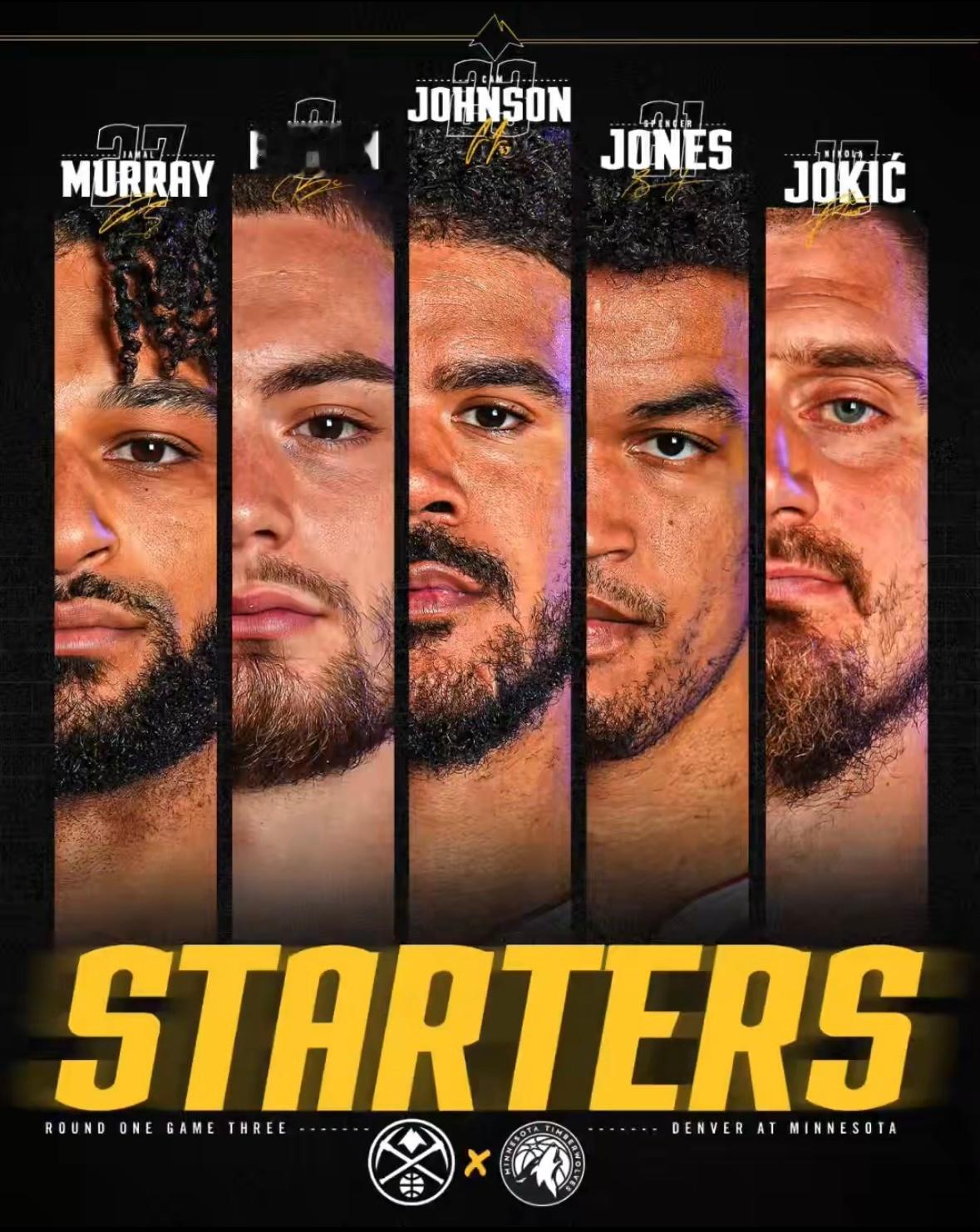 掘金首发:穆雷、布劳恩、约翰逊、琼斯、约基奇森林狼首发:迪文、华子、麦丹、兰德尔