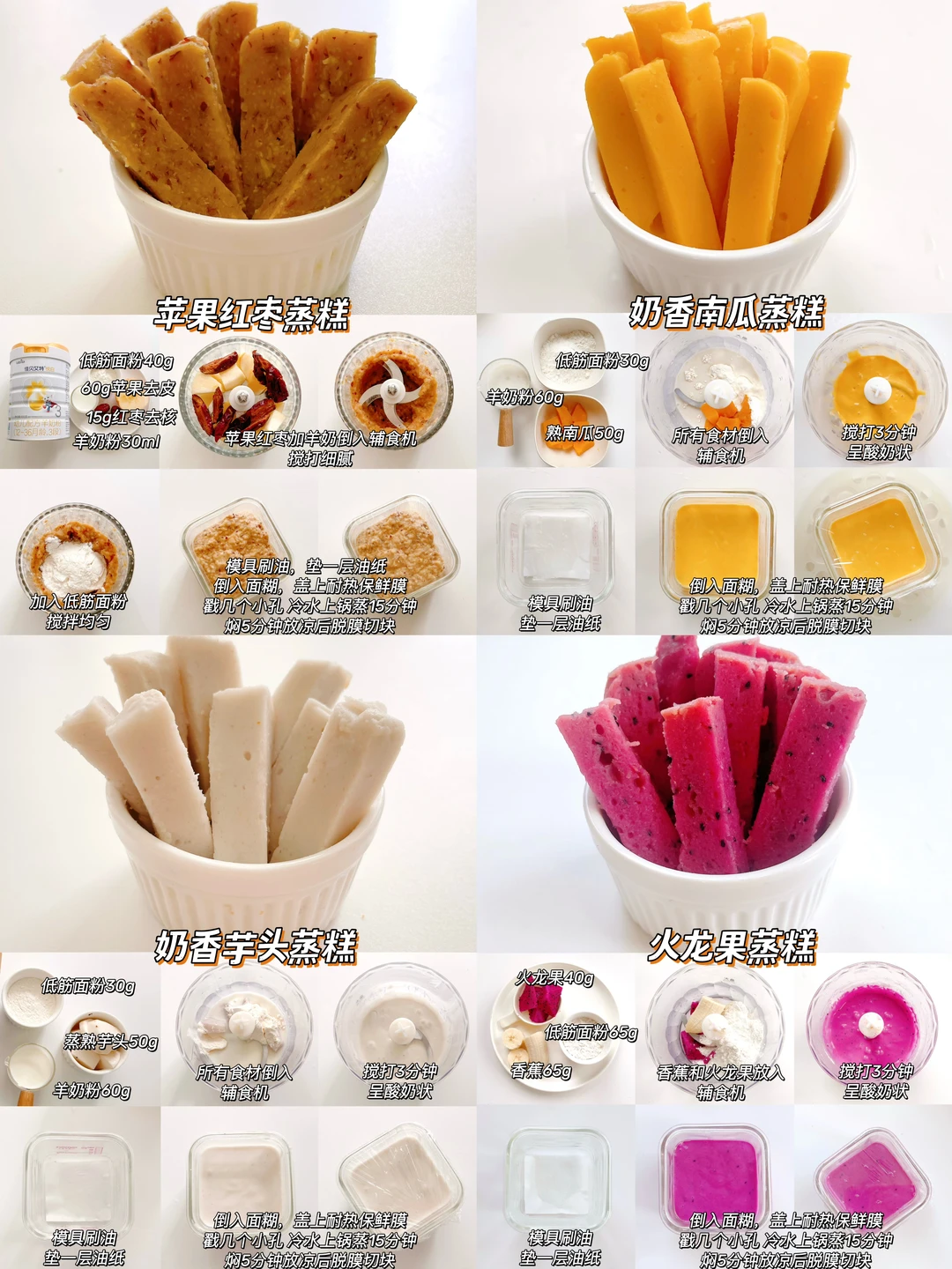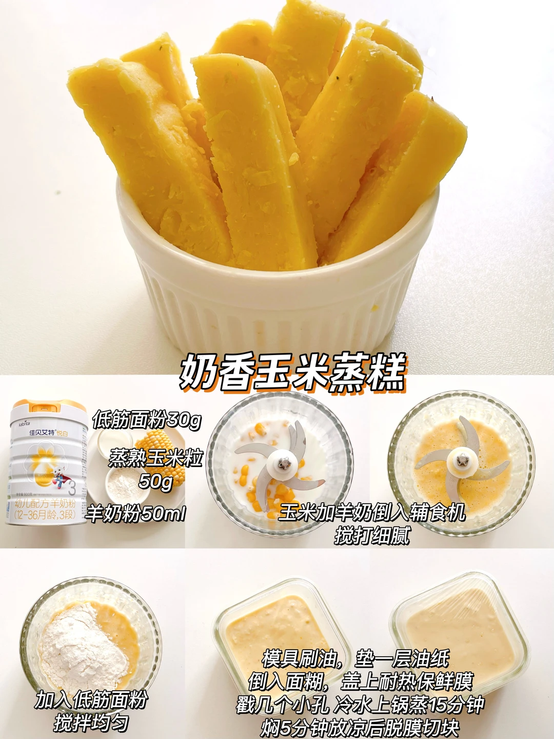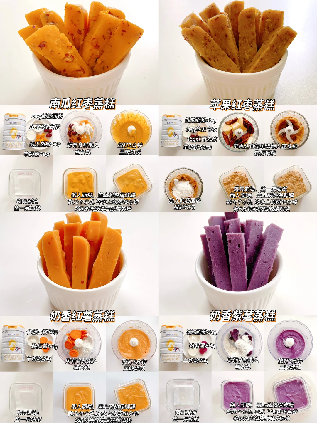 新生儿刚接触到辅食,肠胃娇嫩,蒸糕松软好消化,没牙也能吃,搭配宝宝常喝的羊奶粉,营养加倍!做法简单,0失败,爸爸妈妈收藏起来,一起解锁羊奶的多种可能性