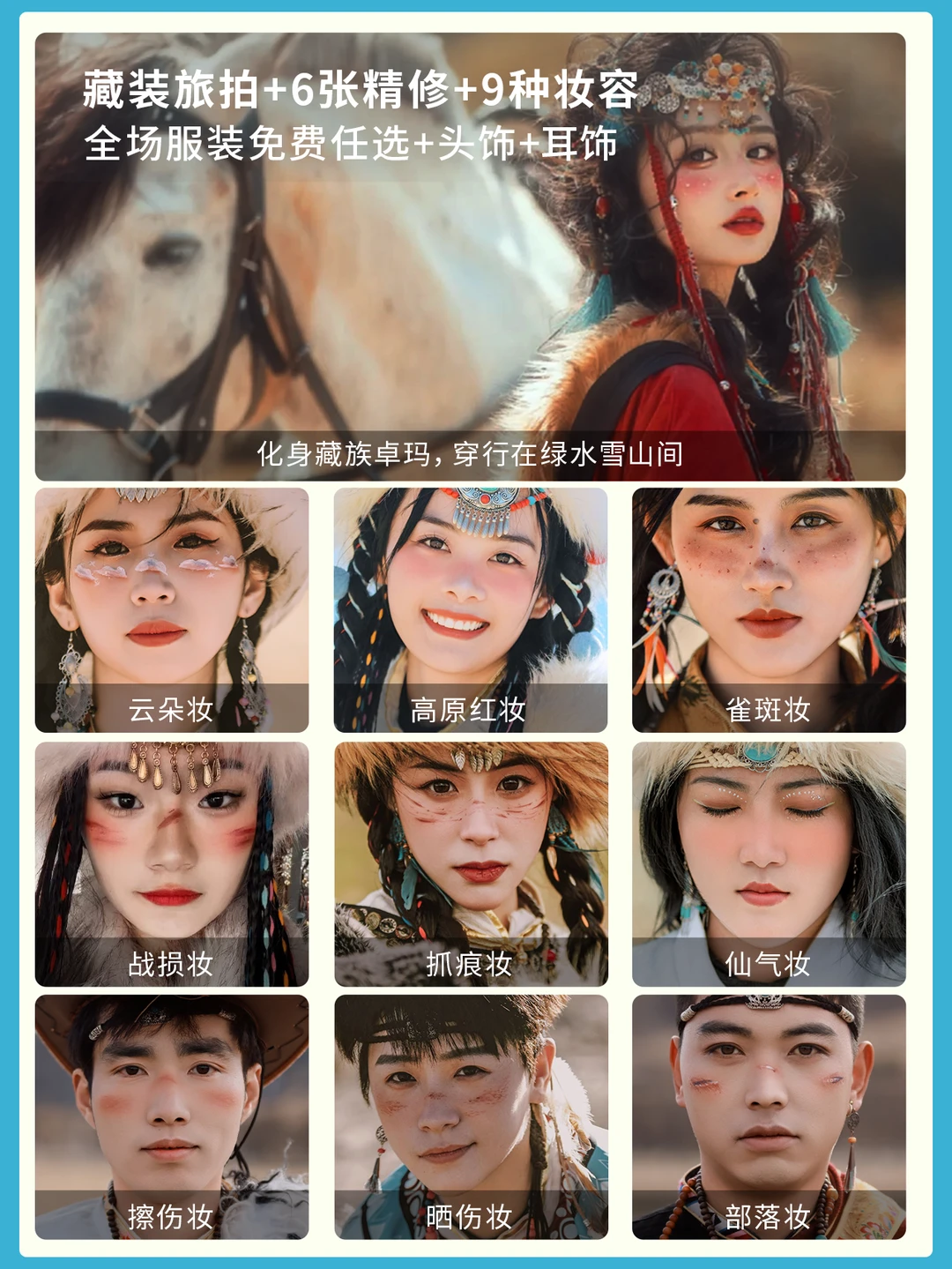 ✅ 藏装旅拍包妆造:6张精修+头饰耳饰免费戴!高原红/雀斑妆超有藏族卓玛味儿~