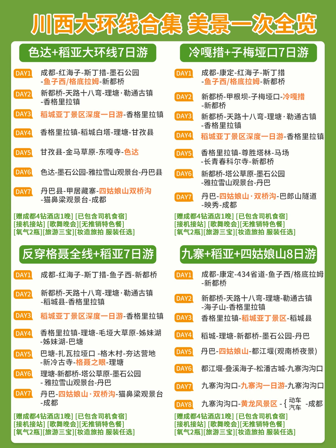 整理了这份3-8天川西线路大合集📝 宝子们按天数对号入座就好啦👇