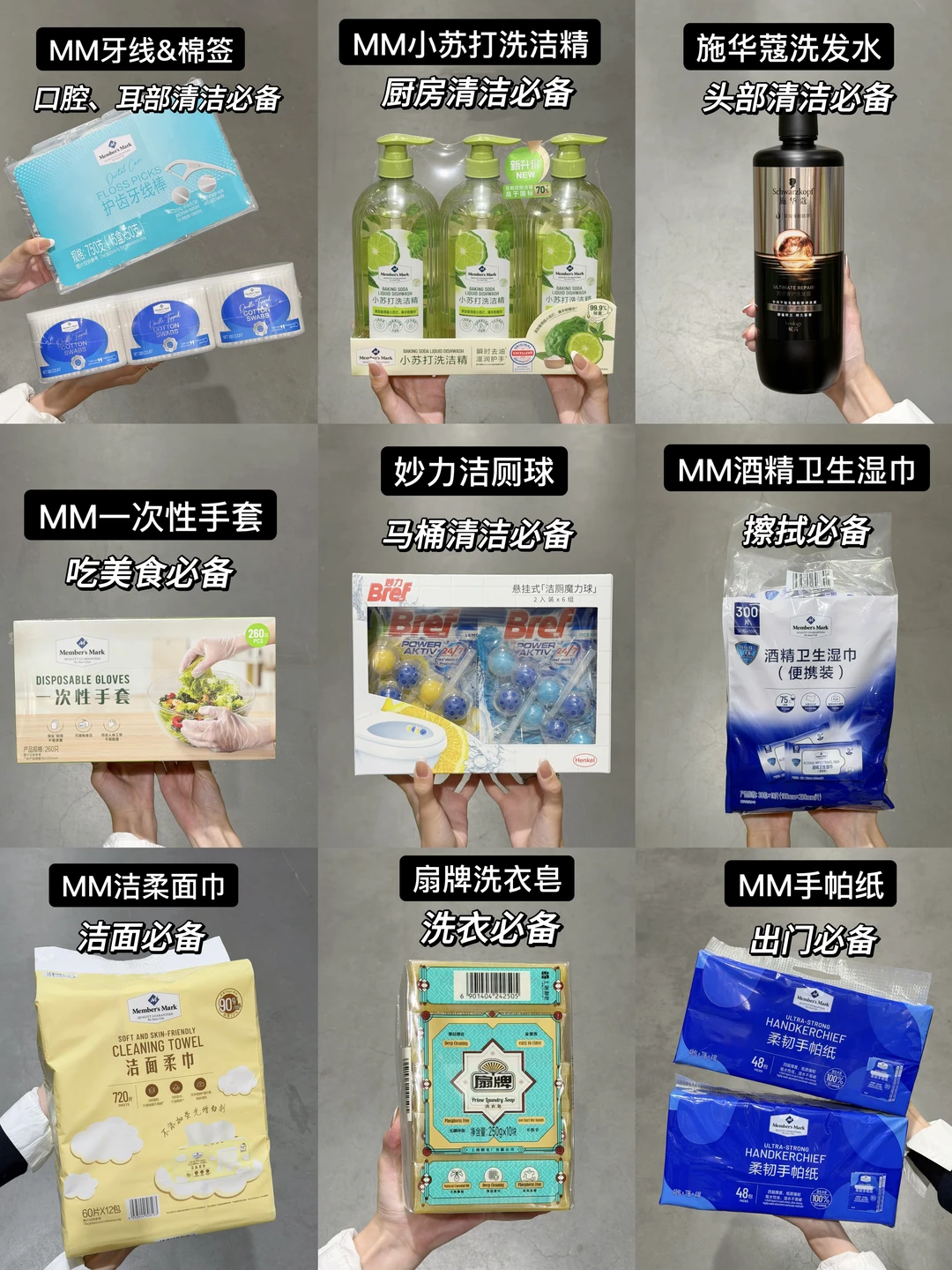 洗洁精、一次性手套、洁柔面巾、牙线、棉签、一次性手套、垃圾袋!都非常推荐购买~