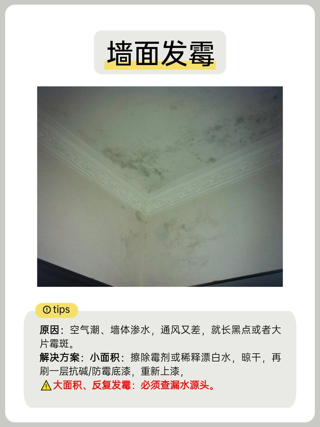 ⚠️大面积、反复发霉:必须查漏水源头。