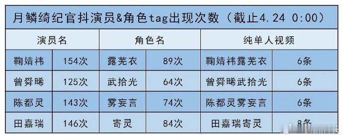 月鳞绮纪收官四位主演角色数据月鳞绮纪四位主演角色数据月鳞绮纪收官主演角色数据 有