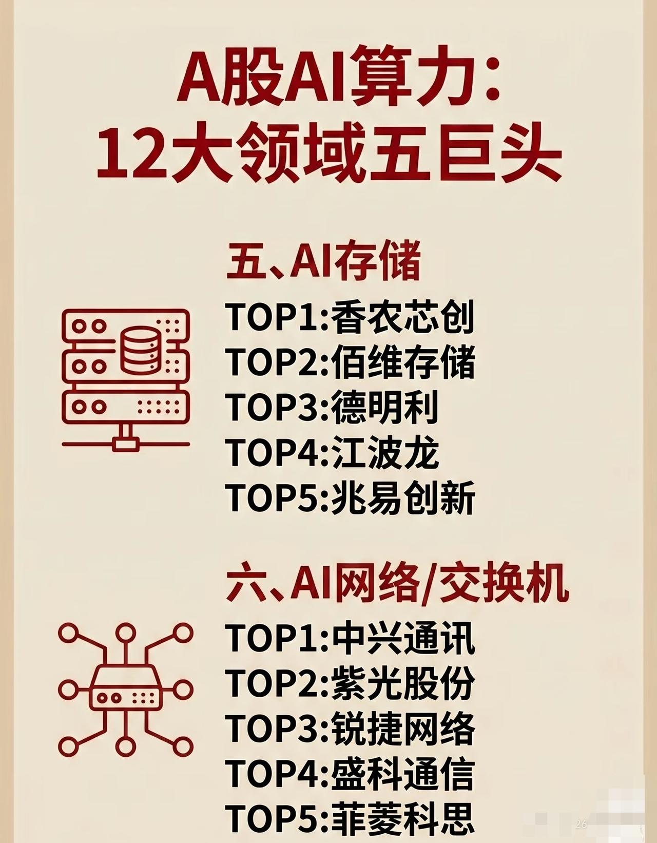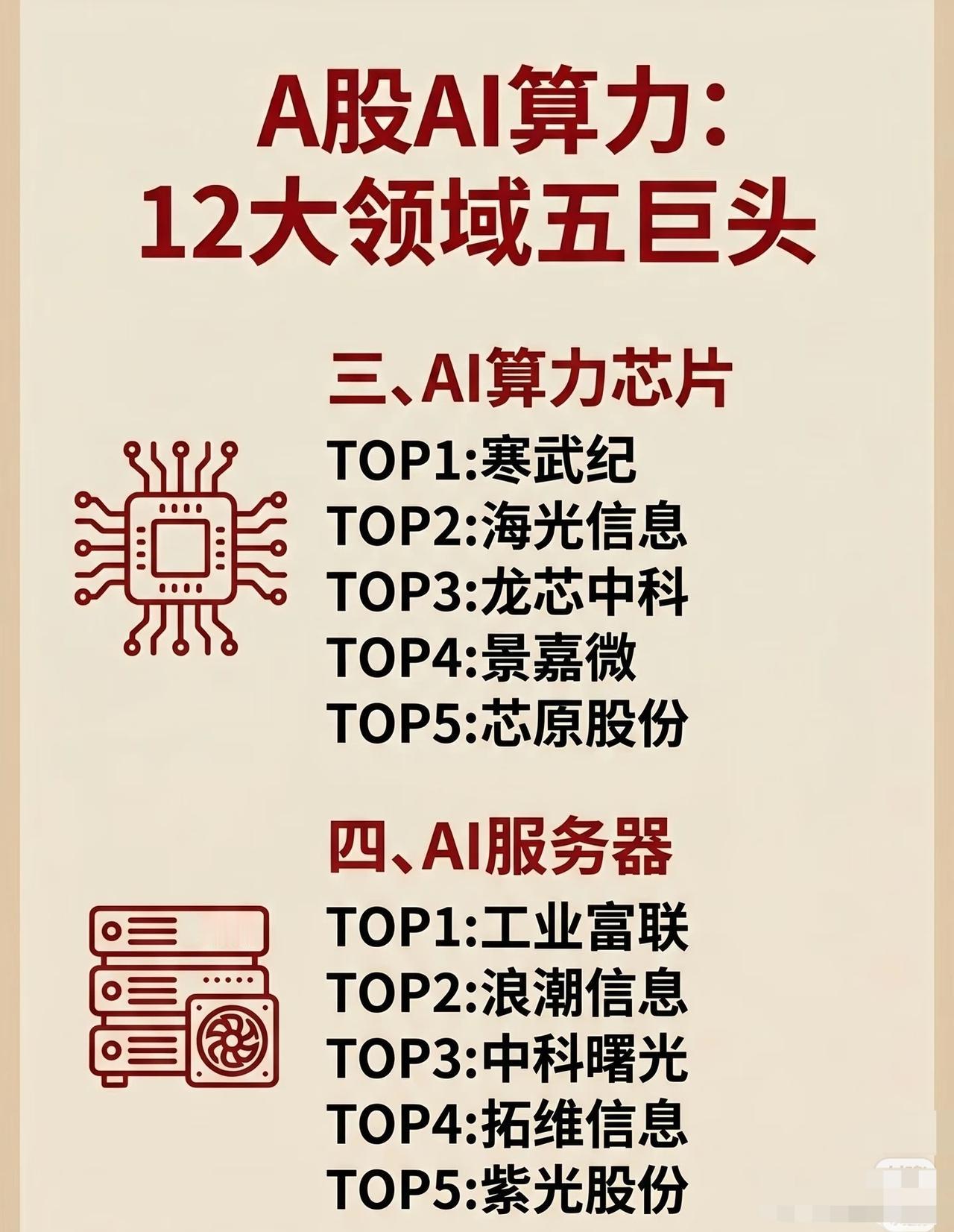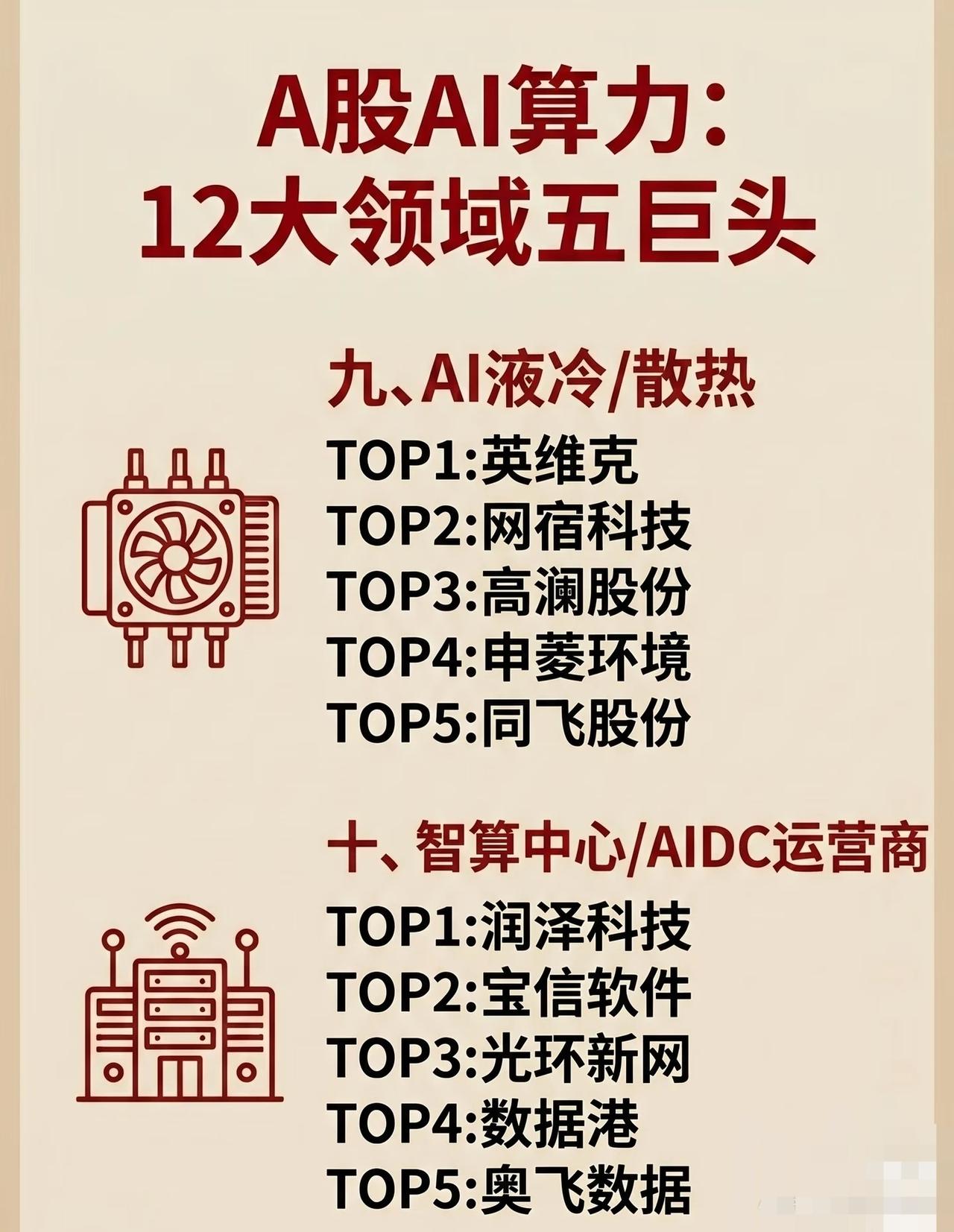 A股AI算力产业链12大领域“五巨头”盘点