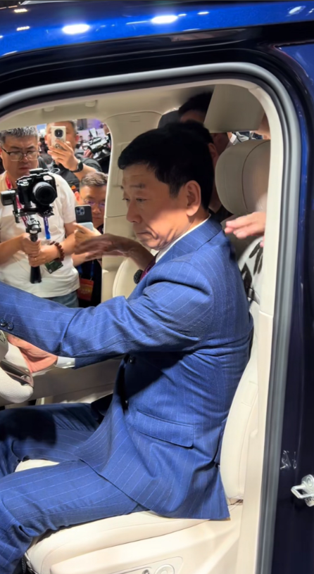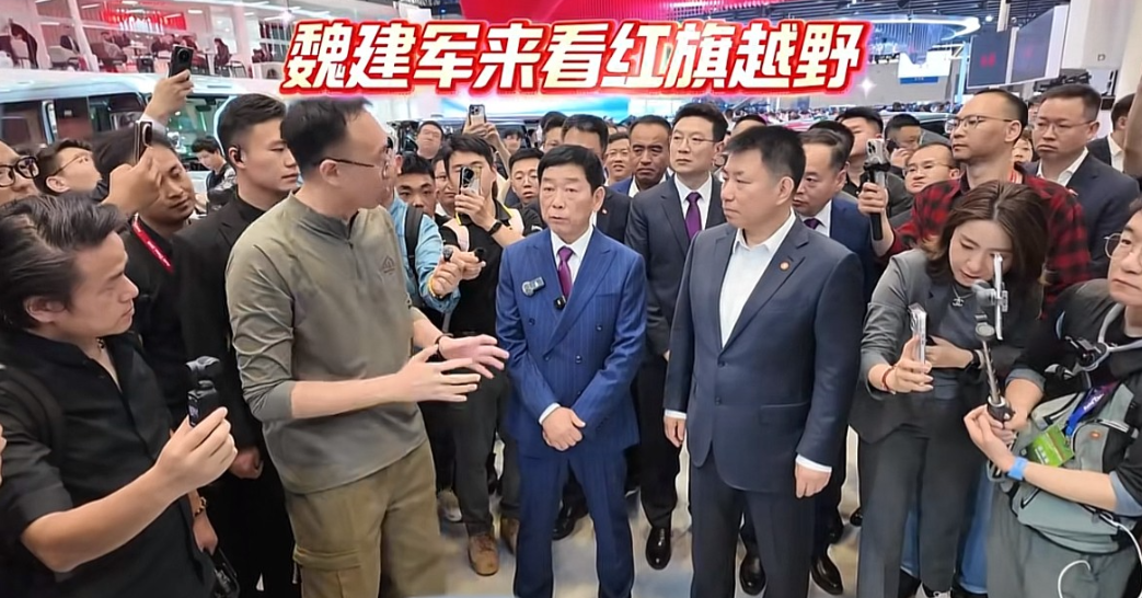 长城老板魏建军着西装现身北京车展引围观,现场参观红旗越野车展台,还看了金葵花国礼。