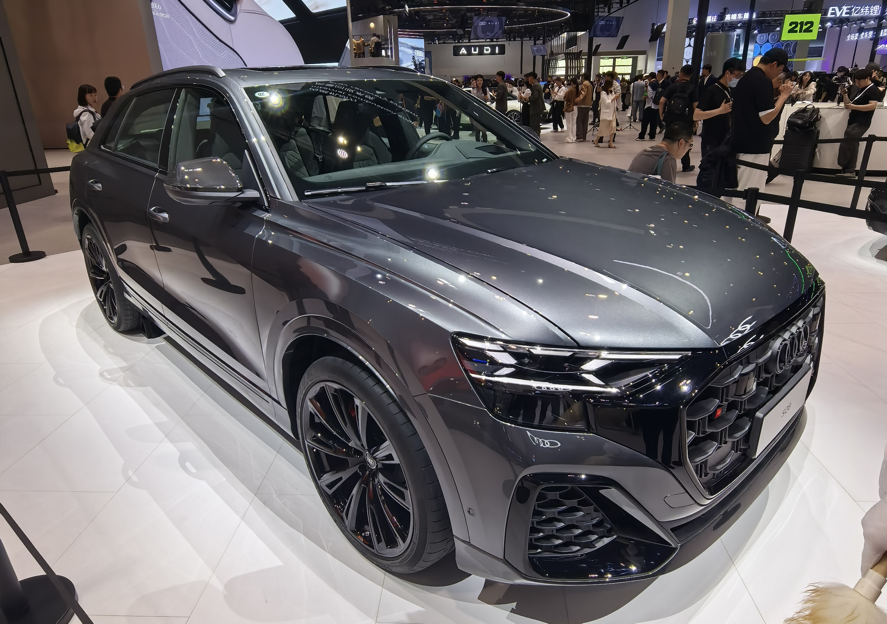 今年奥迪展台的展车颜色,普遍有点儿偏素。但好在SQ8的登陆、奥迪F1的赛车、和S