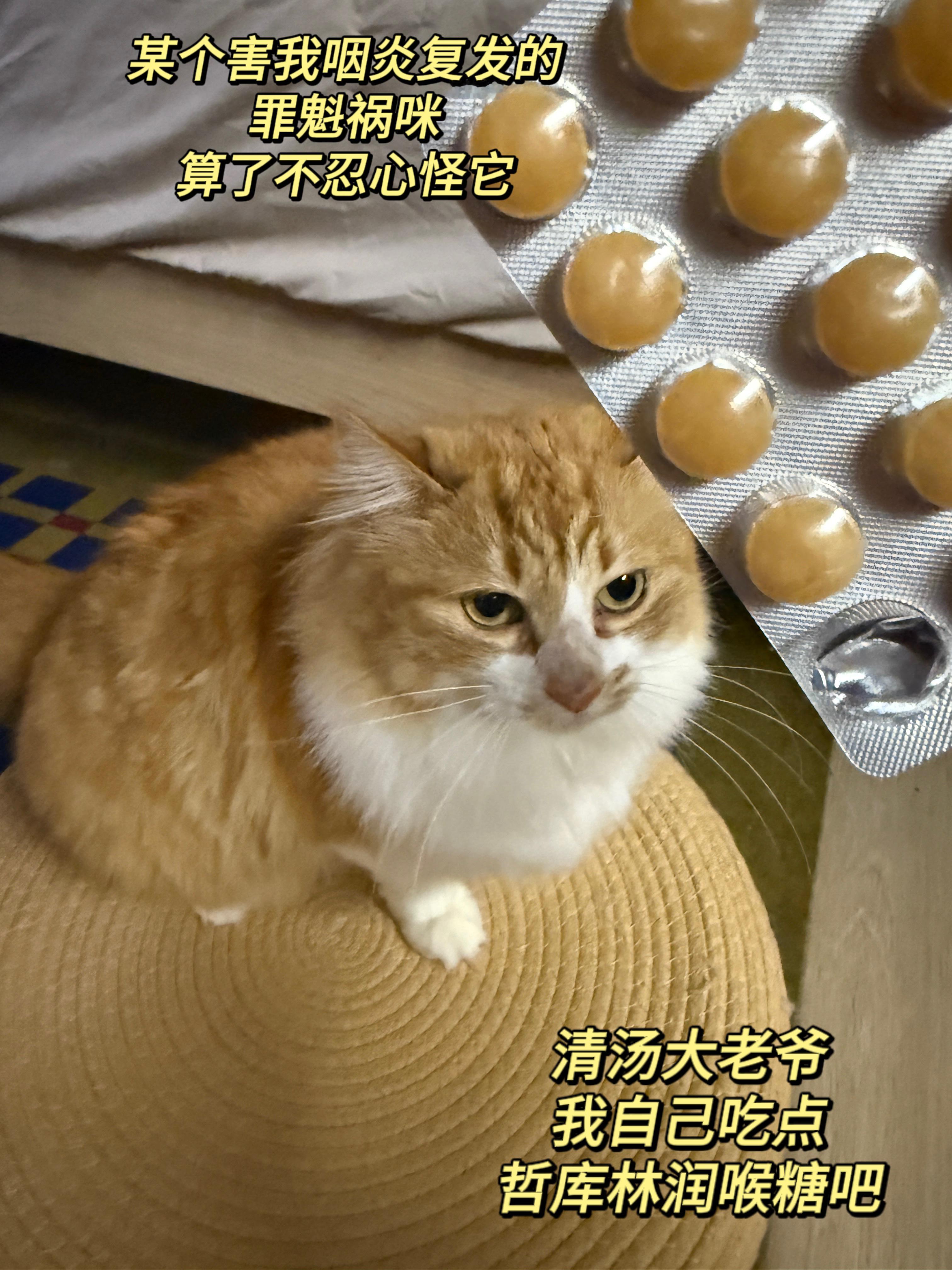 最近和小猫相处得一般,人和猫经常这样,有时候如胶似漆,有时候又若即若离,但其实主要是因为过敏了,它的猫毛实在太多,我咽炎又复发了,还好我一直吃的润喉糖还有囤货。