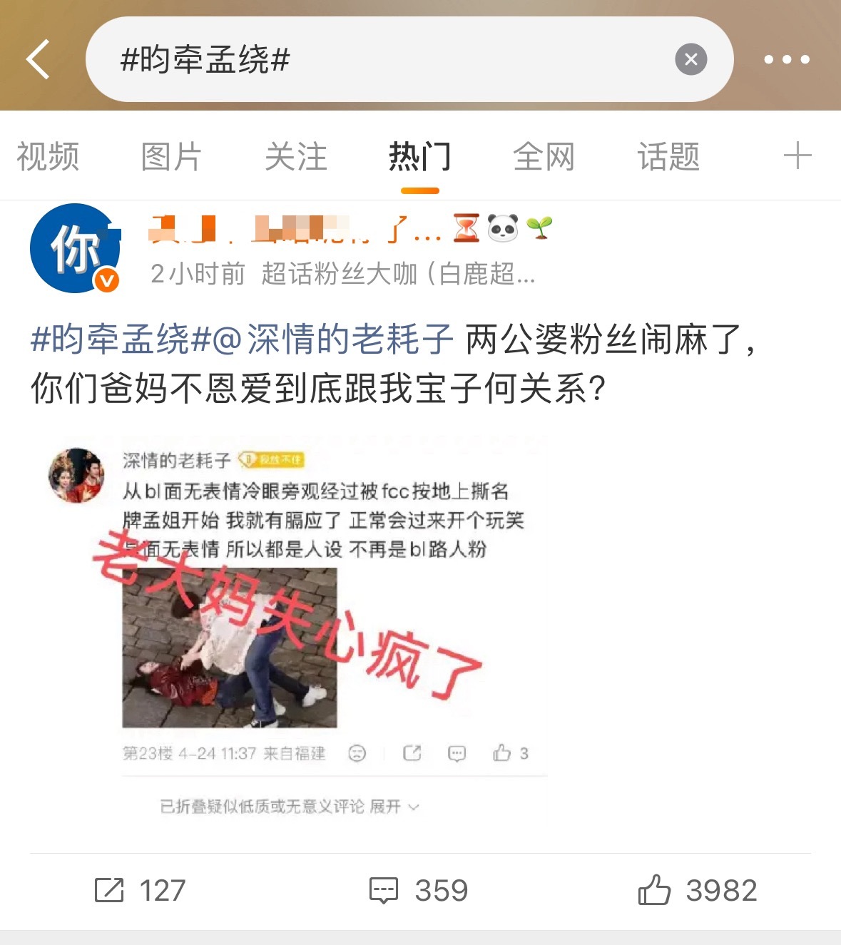 白鹿粉丝涂了昀牵孟绕cp广场,🍍流量真的大。疑似白鹿被yqmr粉无缘无故👄了