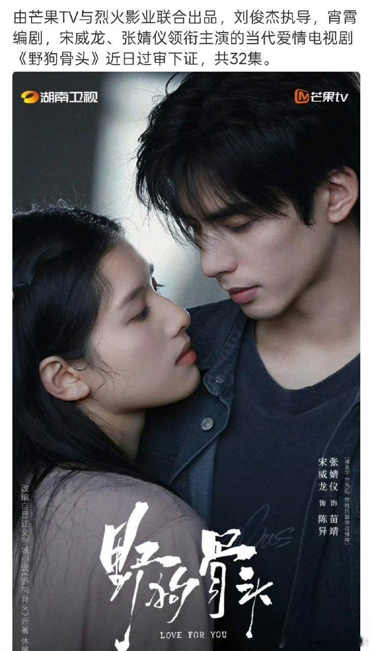 野狗骨头32集宋威龙张婧仪新剧野狗骨头过审下证,共32集,预计暑期档野狗骨头暑期