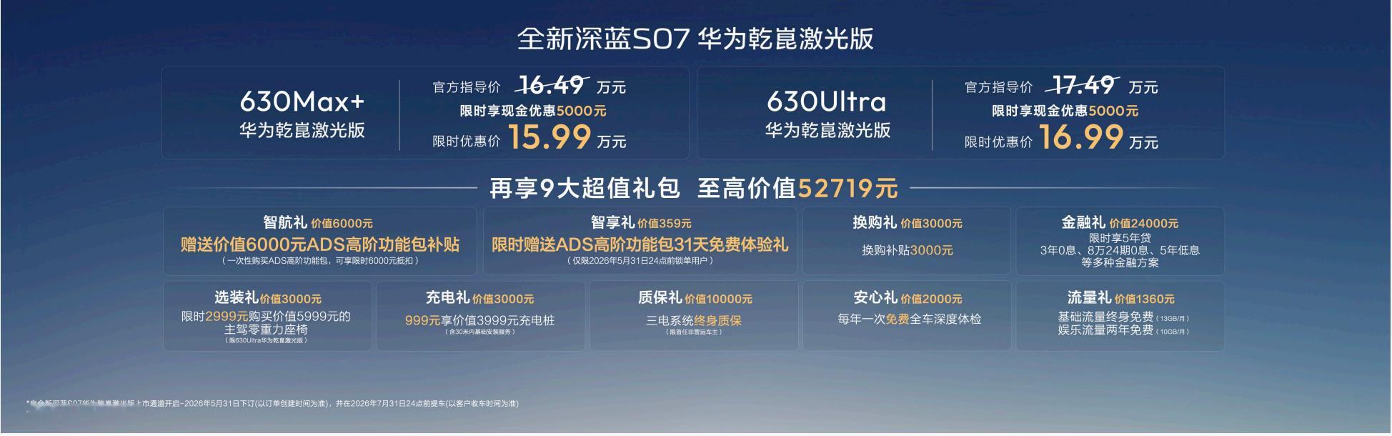 北京车展实地探馆,近距离感受全新深蓝S07华为乾崑激光版,整车质感扎实,科技氛围拉满。搭载激光雷达高阶智驾,依托华为乾崑ADS 4.1 WEWA架构,日常市区通勤有城区NCA从容应对拥堵加塞、无保护左转;长途出行靠高速领航NCA解放双脚,自驾赶路更轻松;小区园区短途代步有园区领航(OTA)加持,搭配24项全面主动安全防护,全场景出行更安心。630km超长纯电续航,日常通勤、周末短途出游无需频繁补能。眼下限时优惠 15.99 万起,ADS高阶功能包直接补贴6000元,叠加至高52719元九大礼包与终身三电质保等权益,以成熟高阶智驾配置全面升级日常出行品质。深蓝S07让更多人用好的智驾 严选的深蓝S07智驾有多牛 北京车展看深蓝 深蓝S07把华为乾崑激光价格打下来了 全新深蓝S07华为乾崑激光版15.99万起 全新深蓝S07