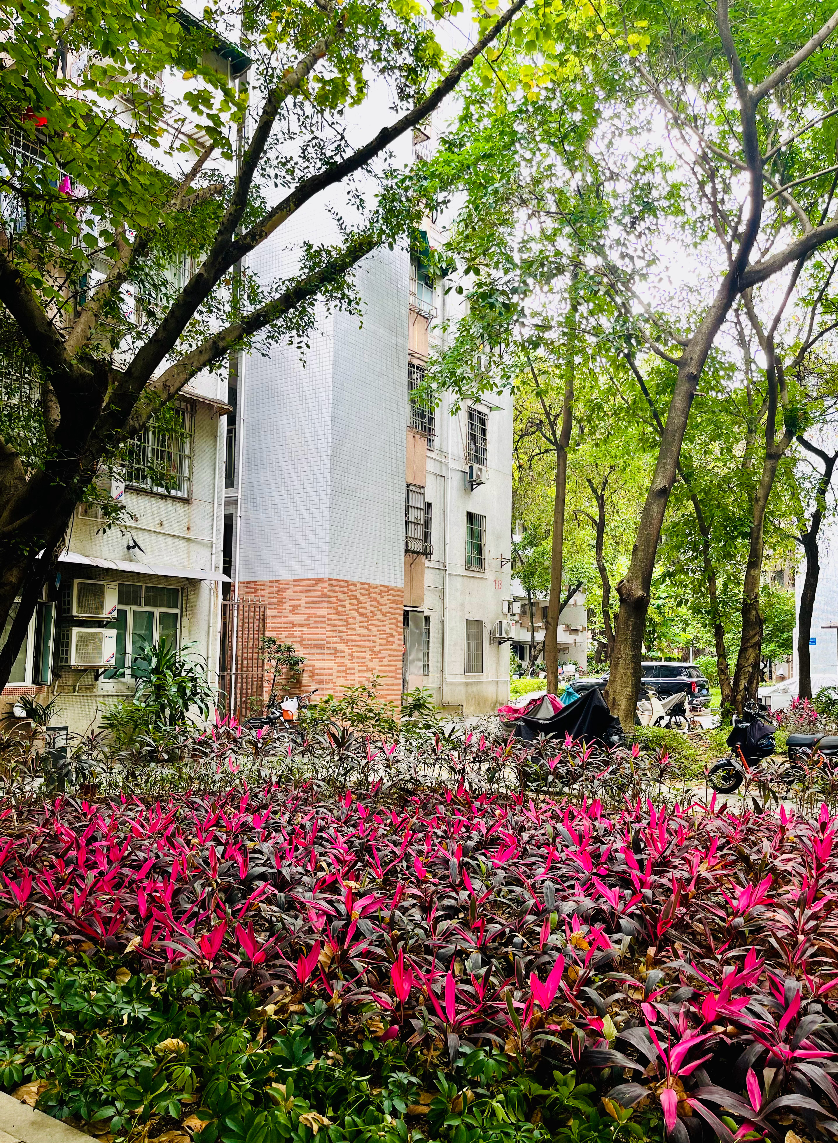 许多年没来看这个房子,令我们感到无比开心的是,这个小区还是非常漂亮。虽然房子有些老了,但周围的环境真的好舒服,在如此中心地段的小区,却能这般安静。尤其是房子旁边的小河,河水清澈见底,可见鱼群游动,有三三两两的白鹭在河里觅食。河两边的树木茂密,树下有椅子,步行累了可坐下来小憩。