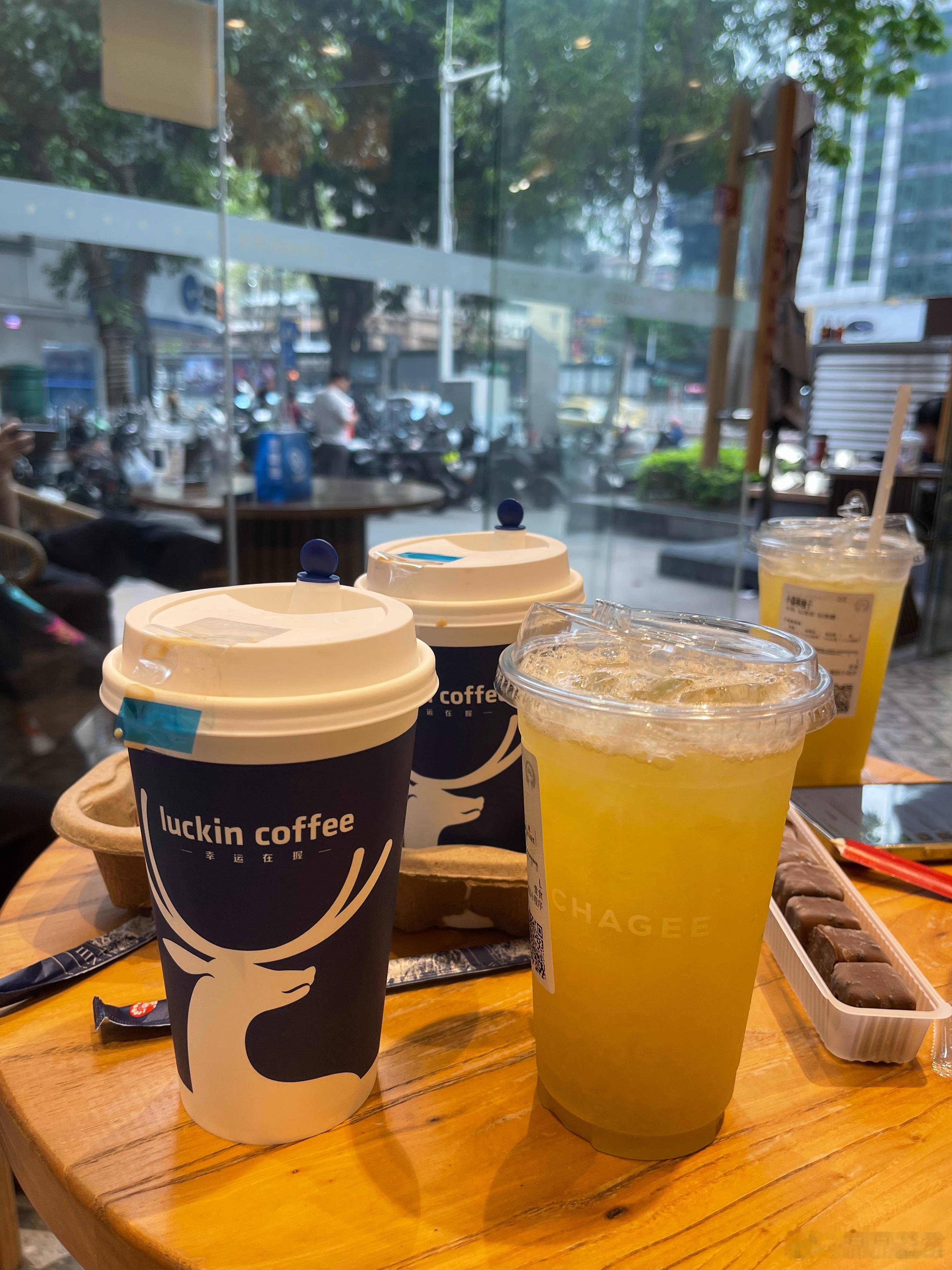 慢慢的陪着母亲散步,走累了,我们就在岗顶的喜茶店给母亲买了奶茶,我们喝柚子茶以及瑞幸咖啡(我第一次喝瑞幸咖啡、觉得味道也OK吧))。