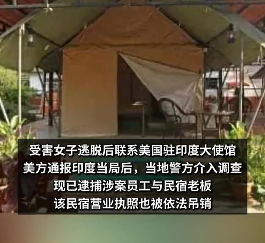 女子被禁闭3天后,成功逃脱,联系了美国驻印度大使馆。印度当局接到使馆的通报,警方逮捕了民宿老板和员工,吊销了营业执照。