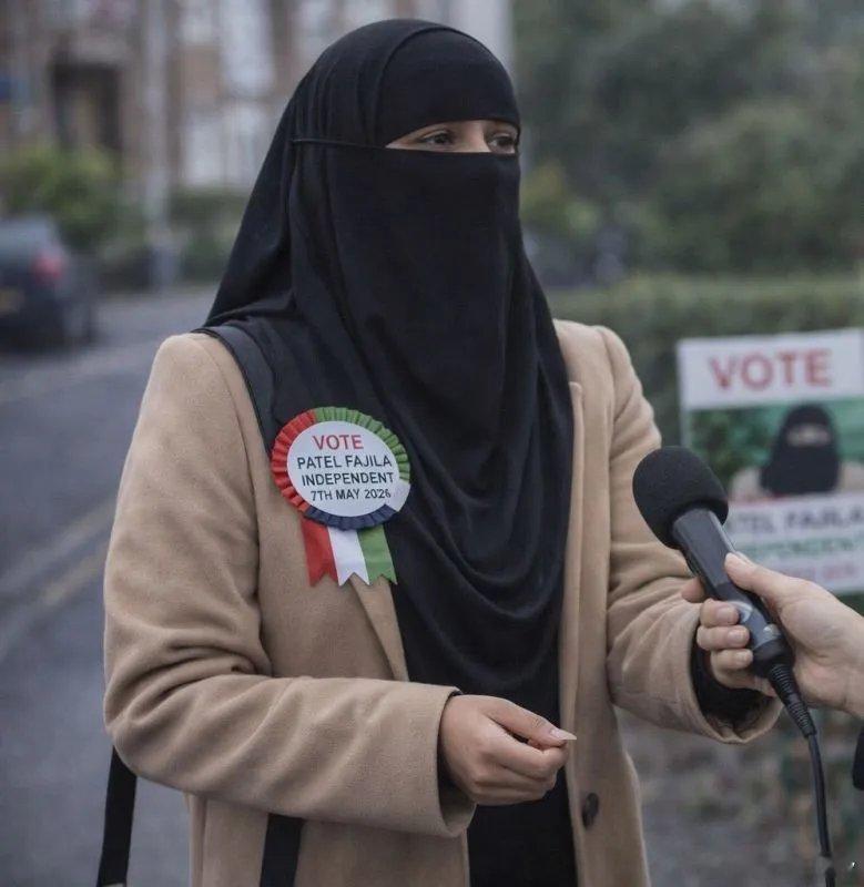 她这种穿着宗教头巾的形象,被部分媒体称为“英国首位戴面纱的议会候选人”。