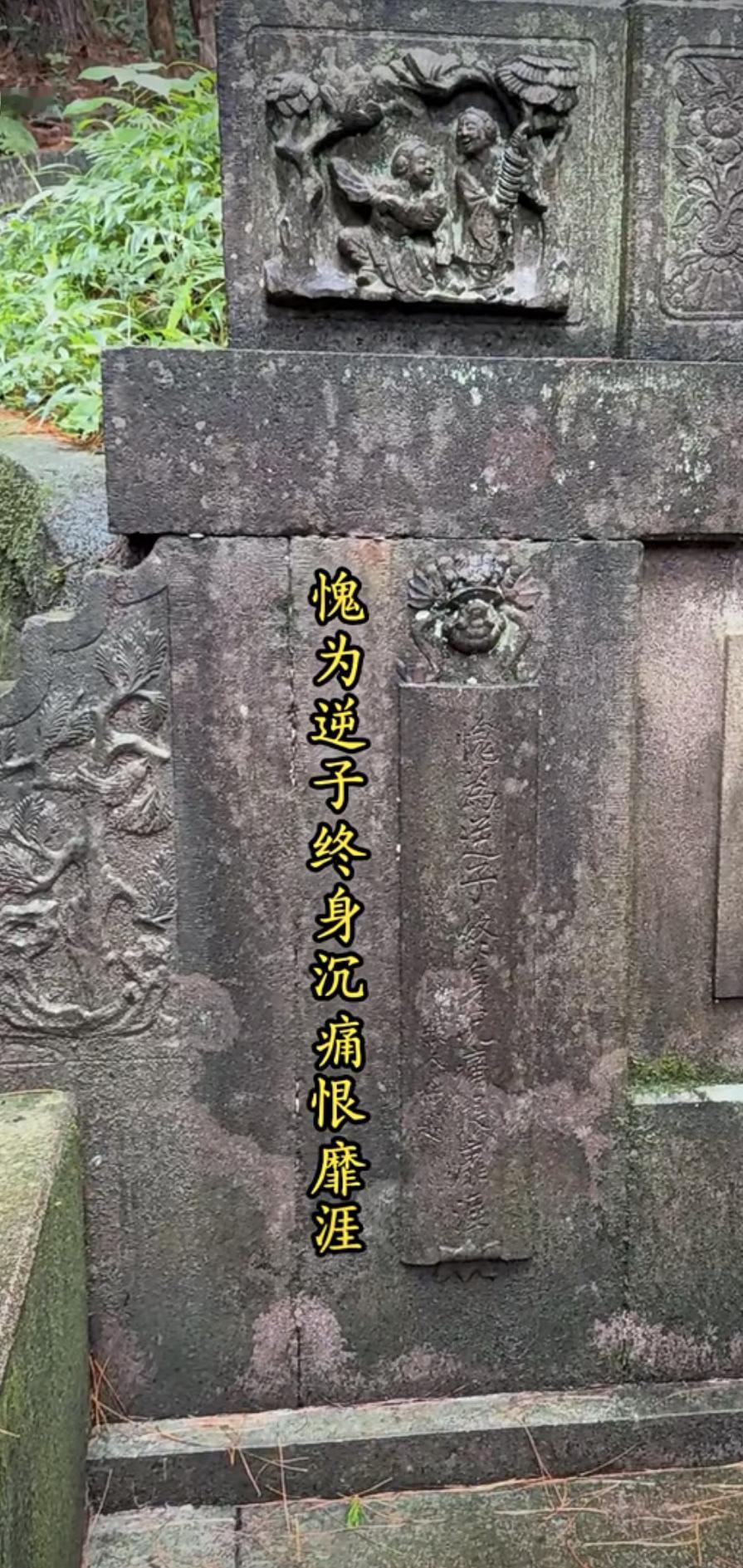 蒋介石在母亲王彩玉墓碑上所写的忏悔联:祸及贤慈当日顽梗悔已晚,愧为逆子终身沉痛恨靡涯。