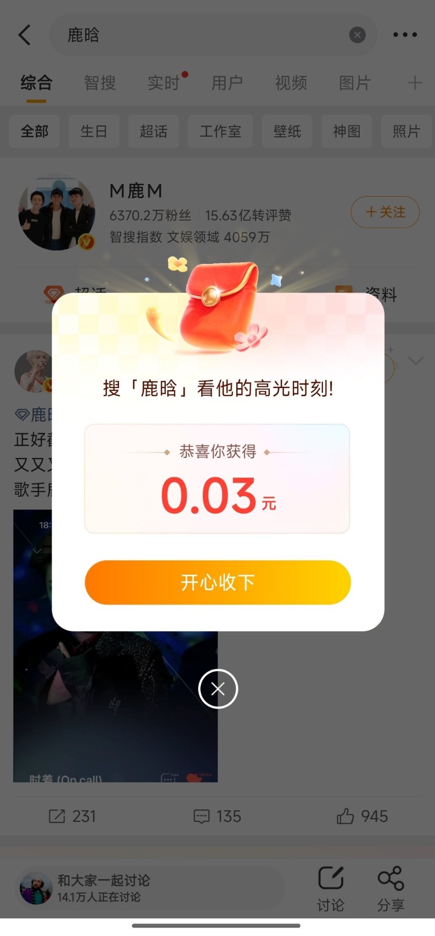 搜鹿晗真有红包,快去!