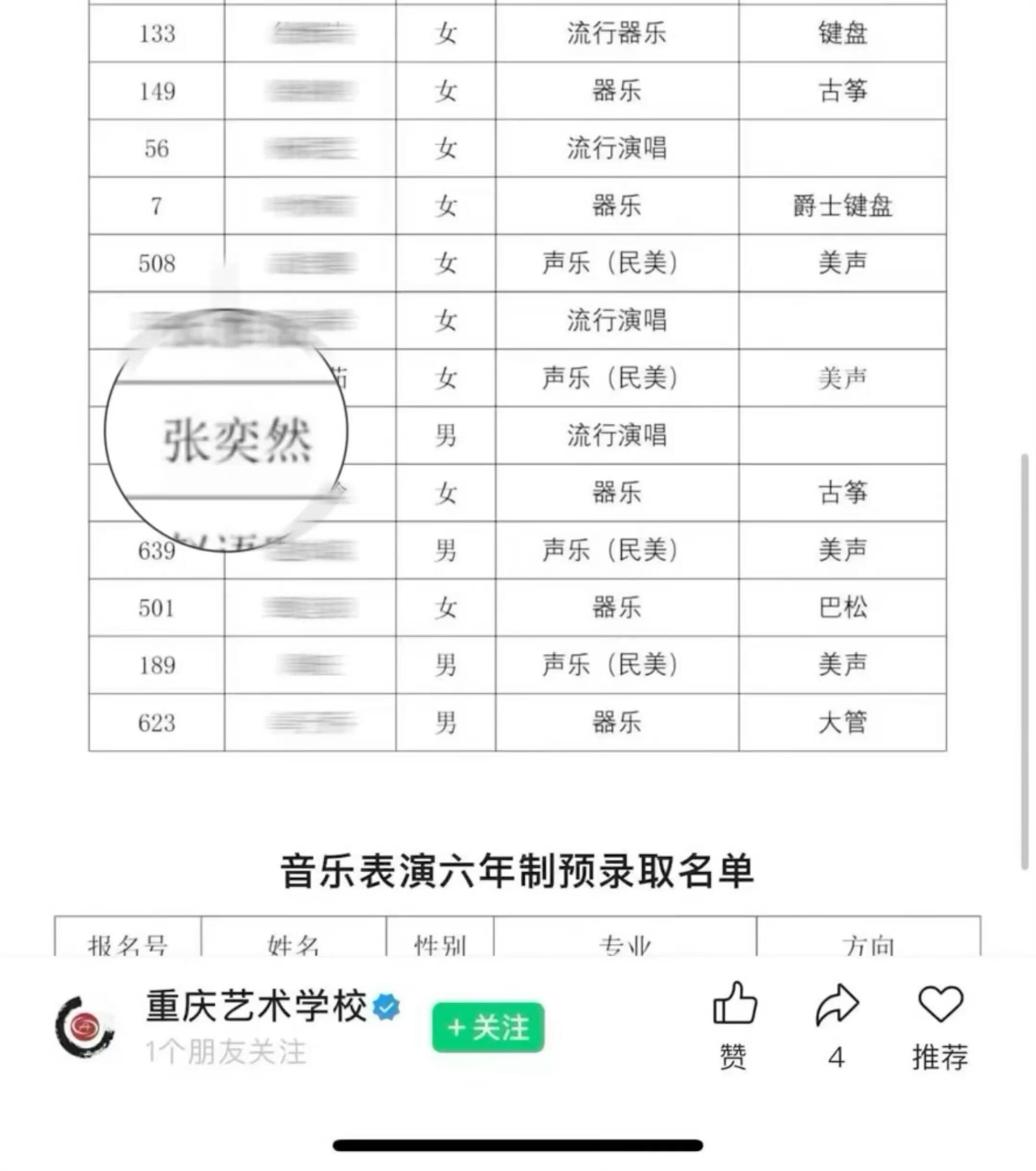 张奕然被重庆艺术学校录取捷报!恭喜张奕然艺考上岸了🎉专业实力狠狠在线,期待舞台上更耀眼的张奕然!张奕然通过艺考